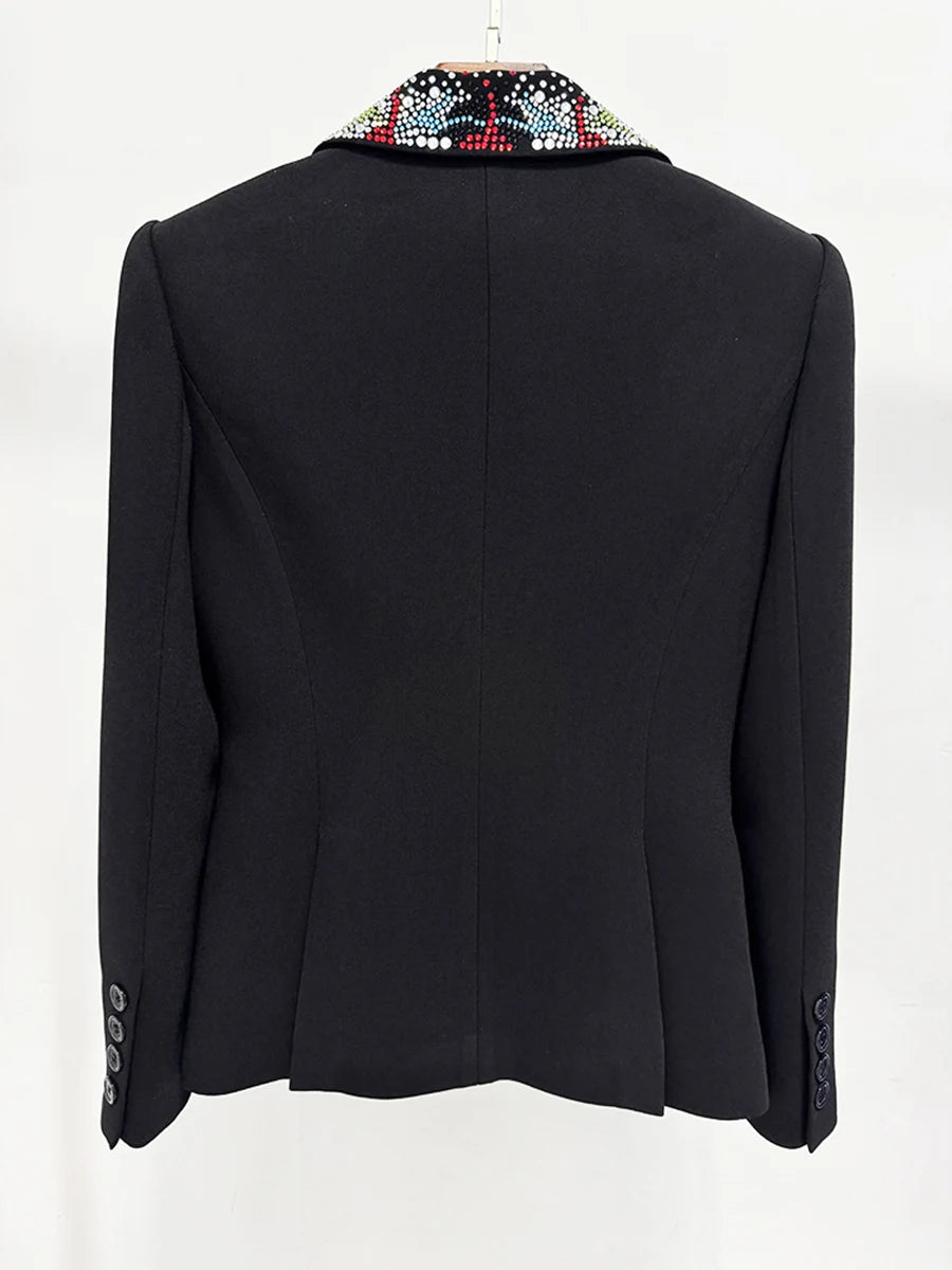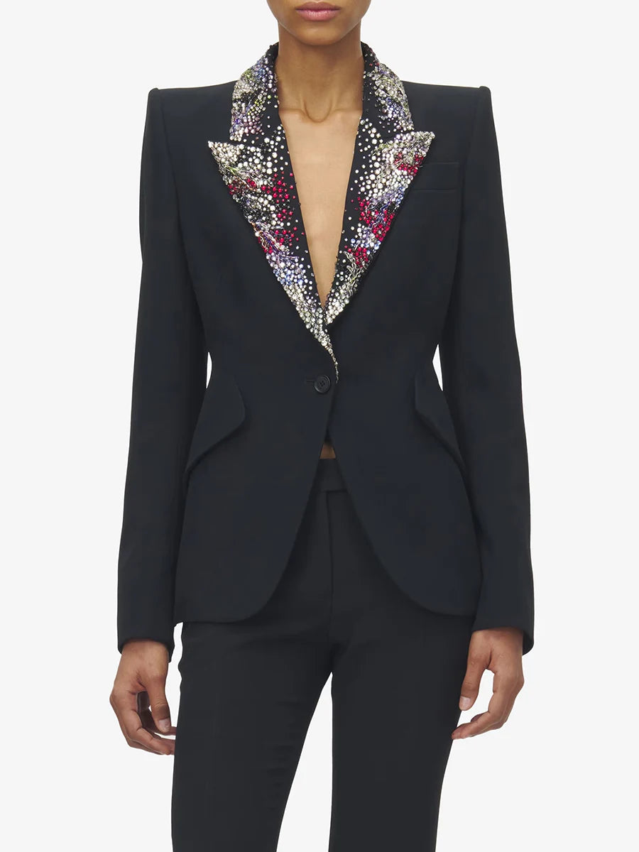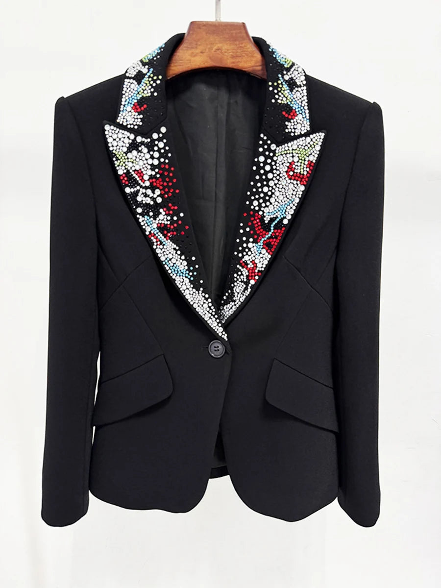Trend4us Luxe Crystal-Embellished Lapel Tailored Blazer Jacket