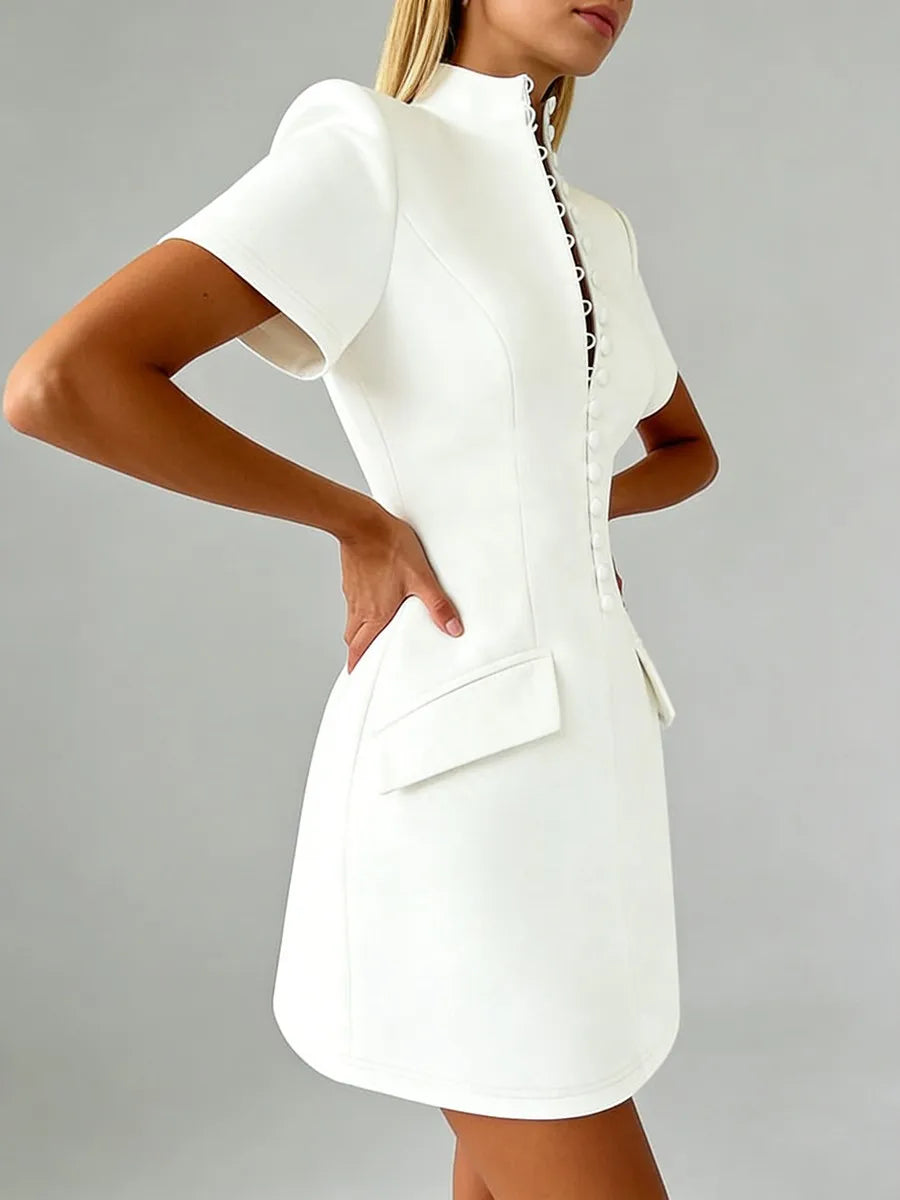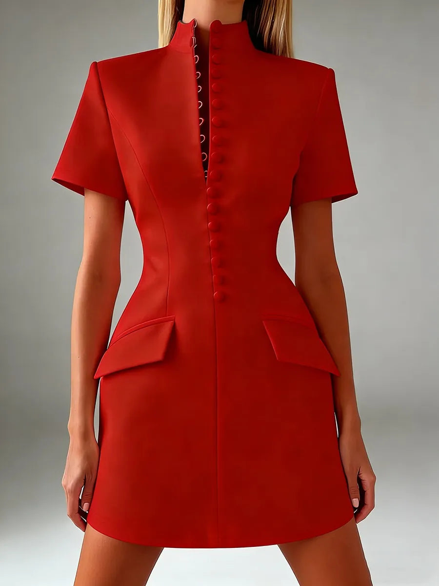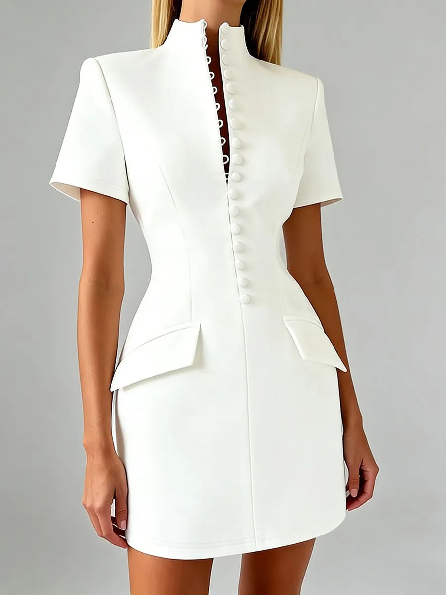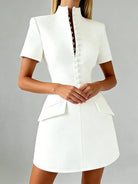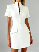Trend4us Luxe High-Neck Button-Front Tailored Blazer Dress