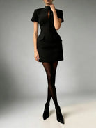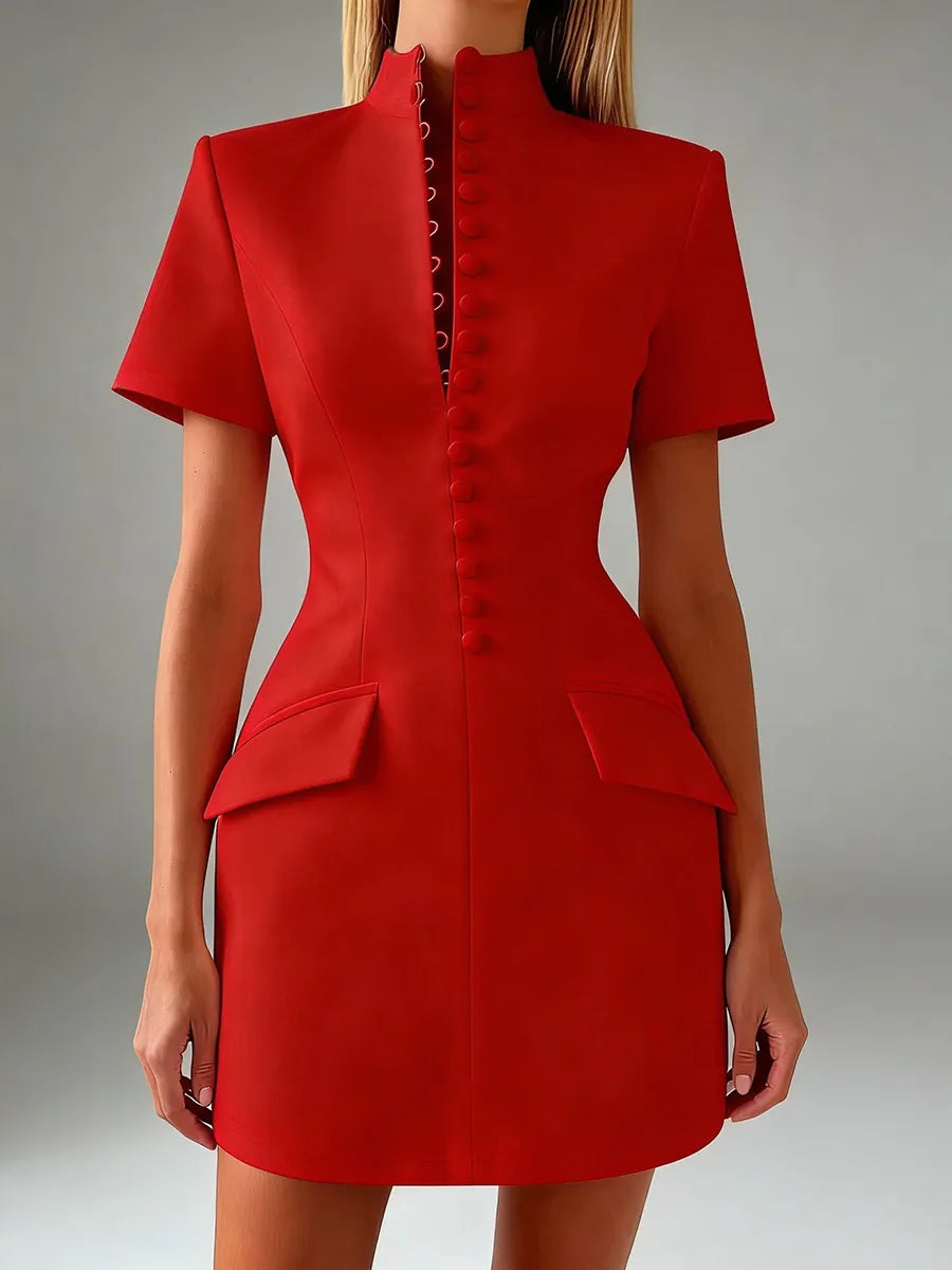 Finished with subtle flap pocket details and clean short sleeves, this blazer-inspired dress is perfect for upscale events, cocktail evenings, business soirées, or fashion-forward city looks.