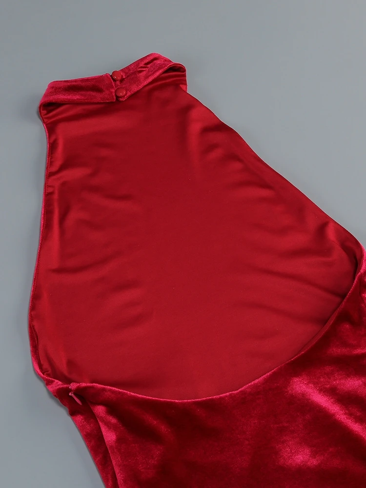 Trend4us Luxe Velvet Fringe Halter Maxi Dress