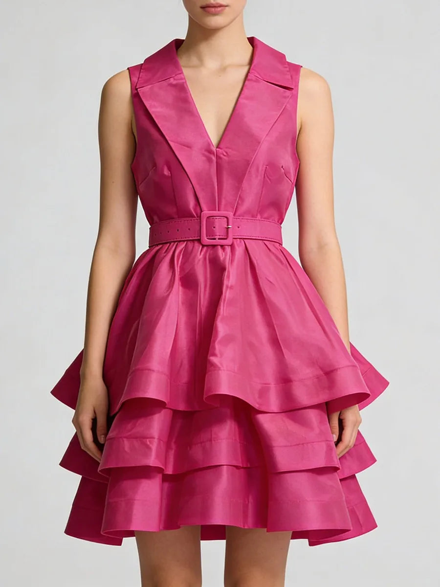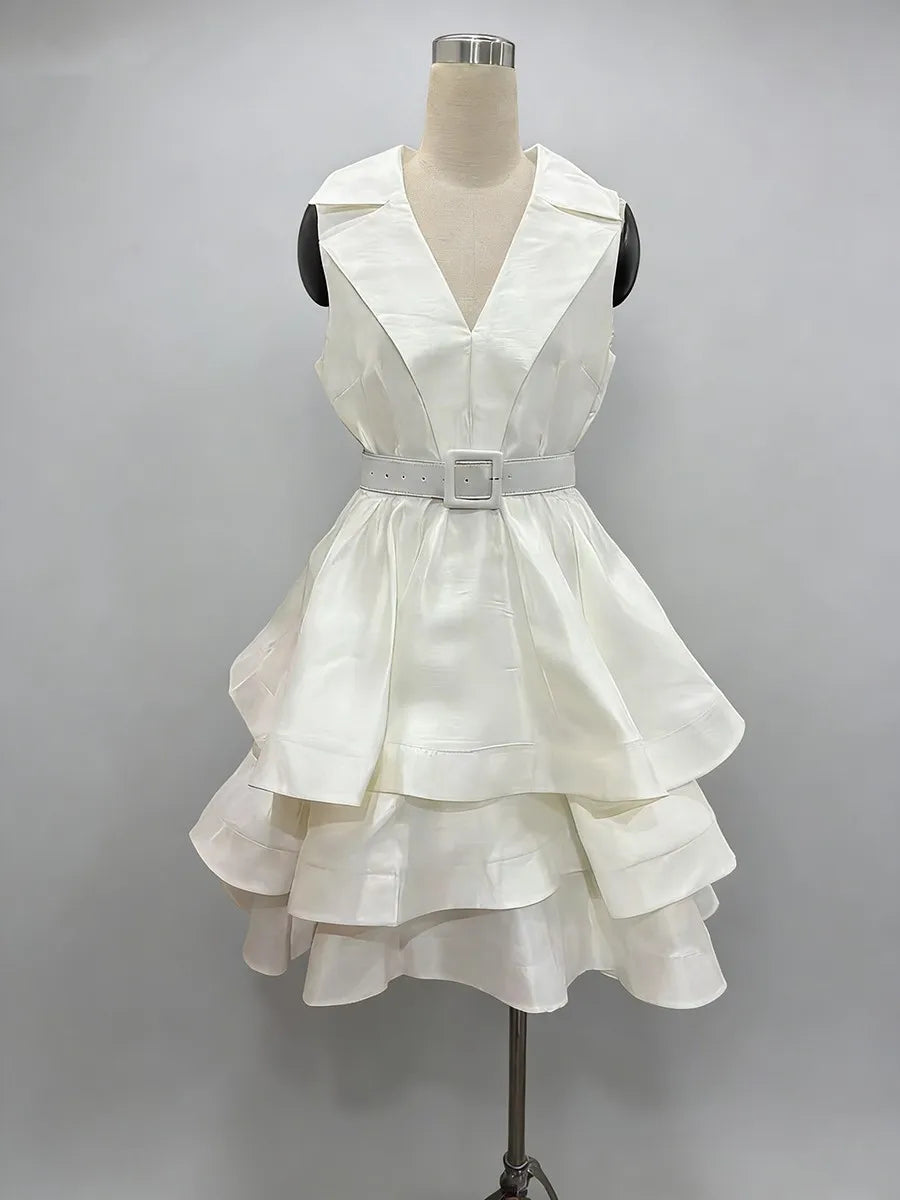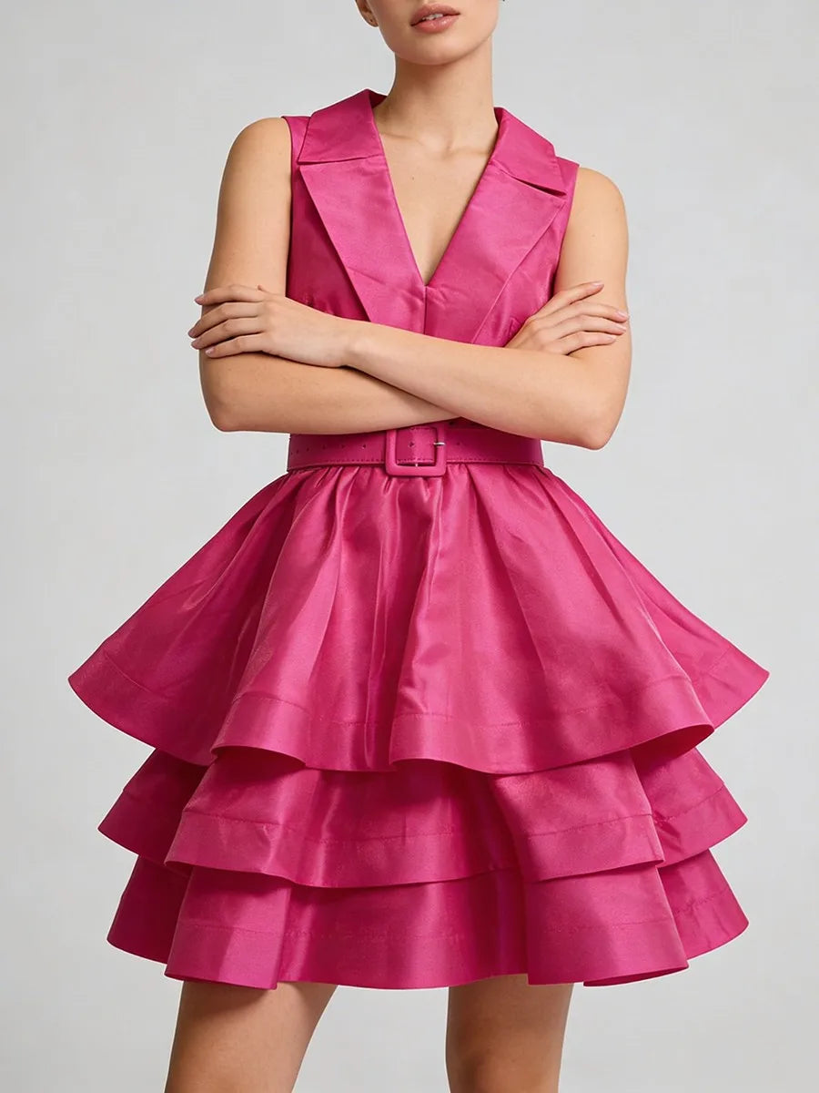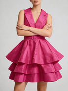 Refined structure meets soft movement in the Trend4us Modern Belted Tiered Ruffle Mini Dress—a contemporary statement designed for confident, style-driven women. Featuring a sleek blazer-inspired neckline and a sculpted sleeveless silhouette, this mini dress is elevated by a matching belted waist that defines the figure with polished precision.