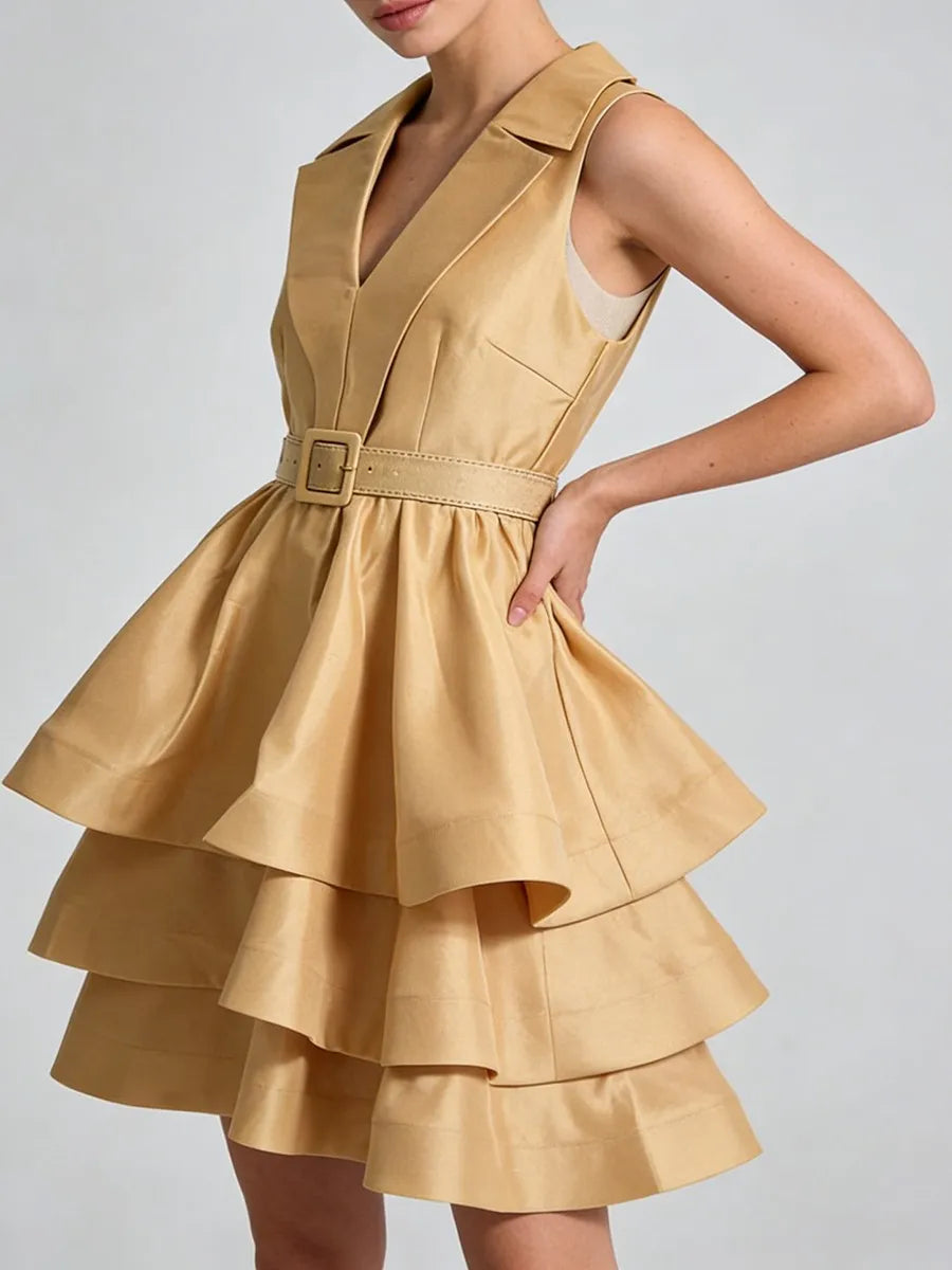 Trend4us Modern Belted Tiered Ruffle Mini Dress