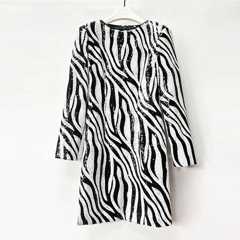 Trend4us Sequin Zebra Print Long Sleeve Mini Dress