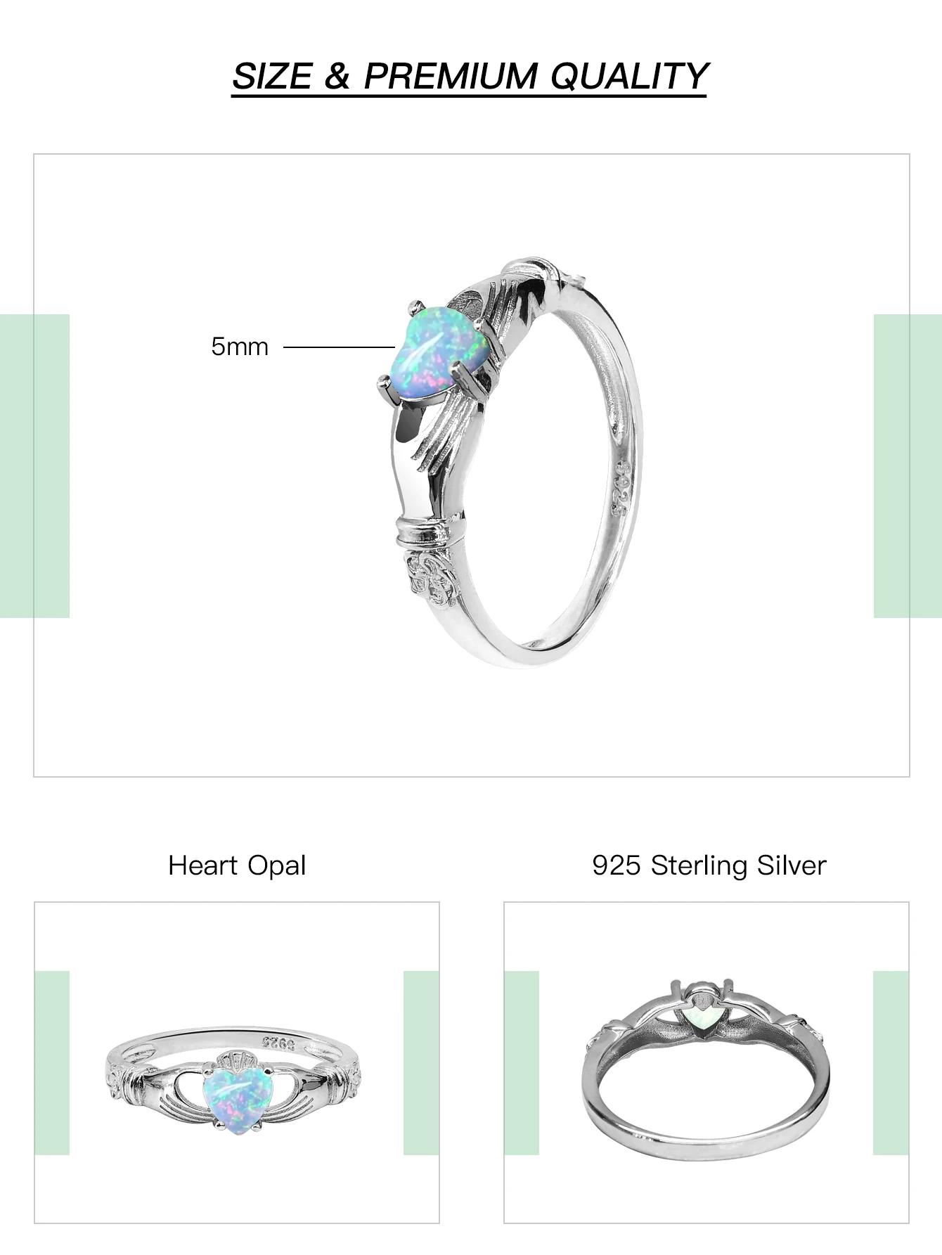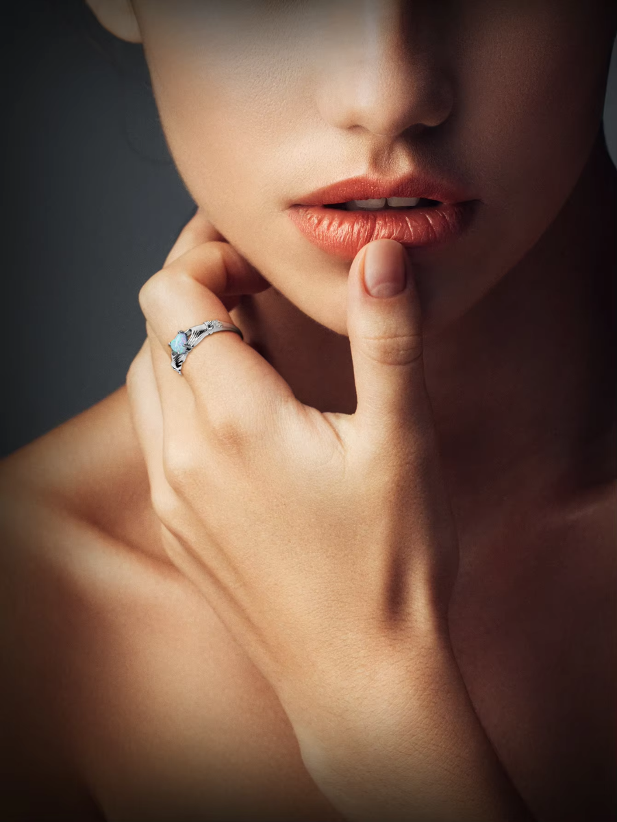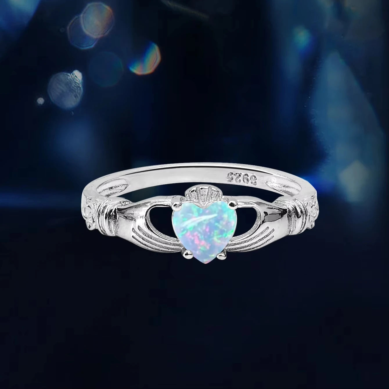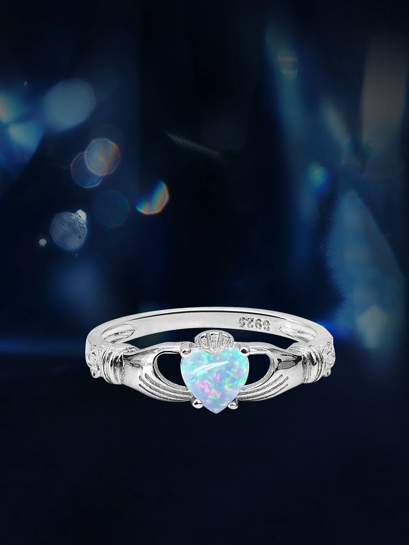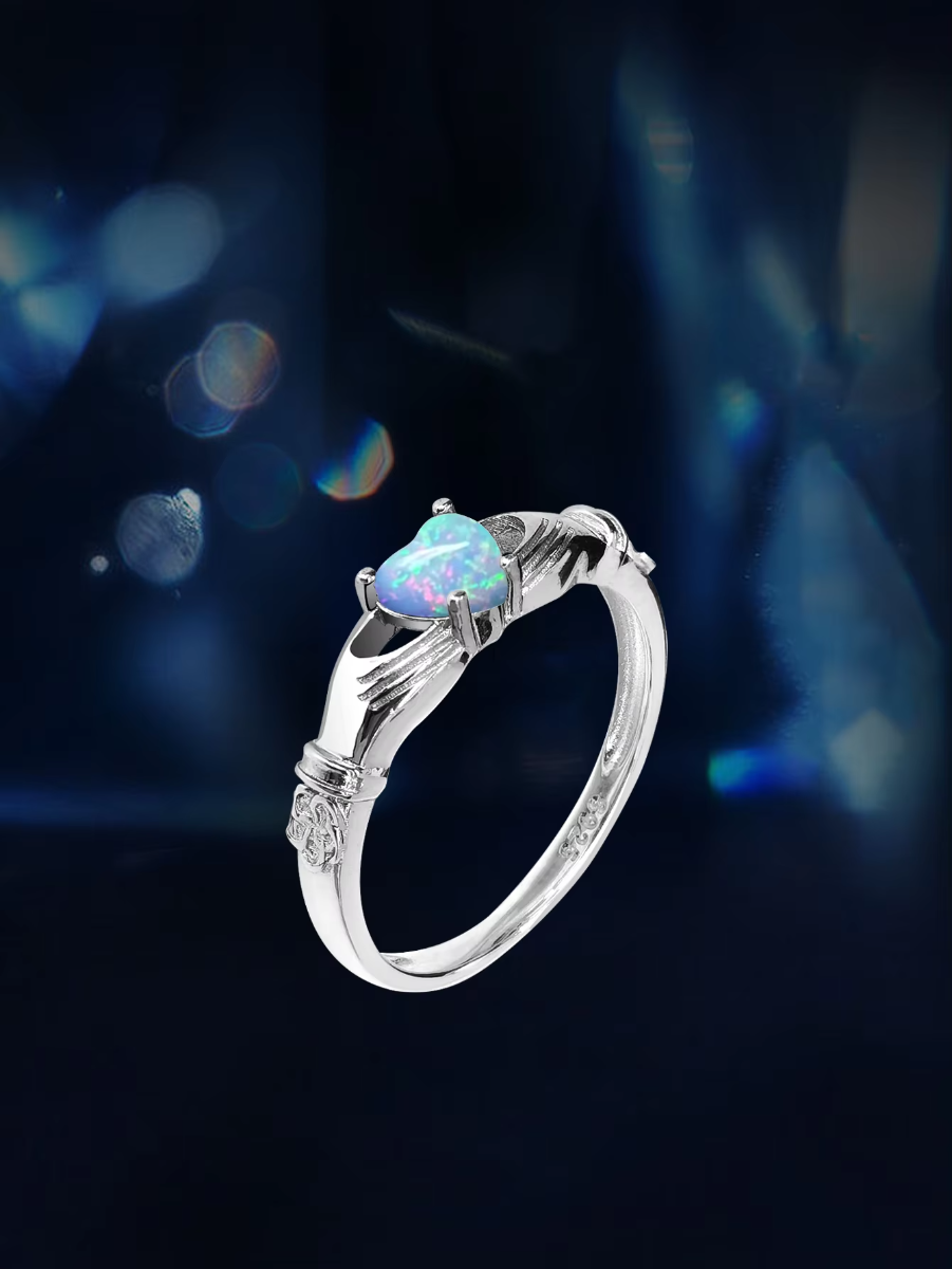 Delicately romantic with a timeless vintage soul, the Trend4us Heart-Cut Opal Vintage Sterling Silver Solitaire Ring is designed to captivate from every angle. Featuring a luminous heart-shaped opal that shimmers with iridescent flashes of blue, green, and pink, this ring symbolizes love, individuality, and eternal beauty.