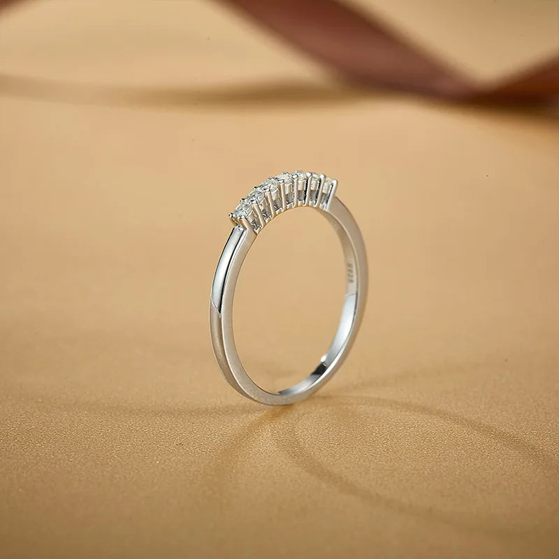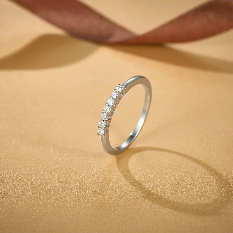 Trend4us Pavé Moissanite Half-Eternity Sterling Silver Band Ring