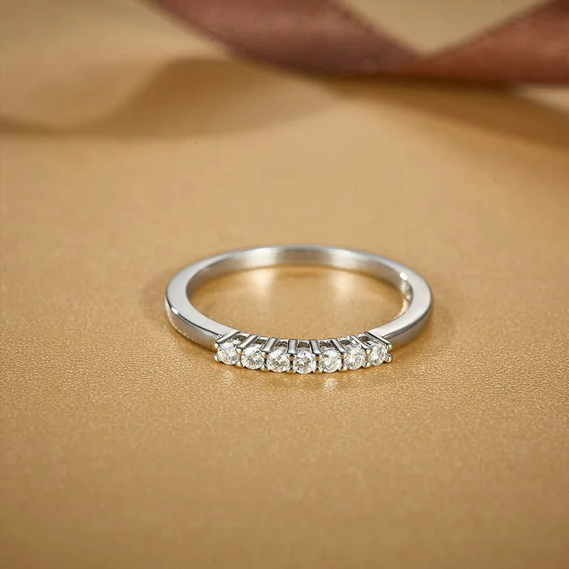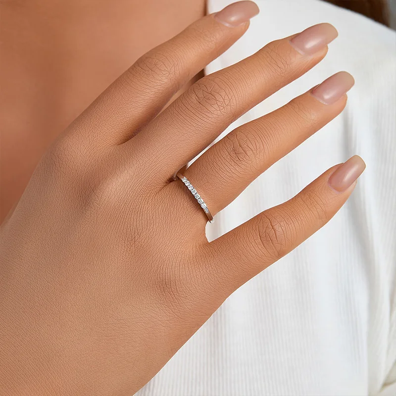 Timeless elegance meets modern brilliance with the Trend4us Pavé Moissanite Half-Eternity Sterling Silver Band Ring. Crafted in luminous 925 sterling silver, this refined band features a seamless row of hand-set pavé moissanite stones that deliver exceptional sparkle from every angle.