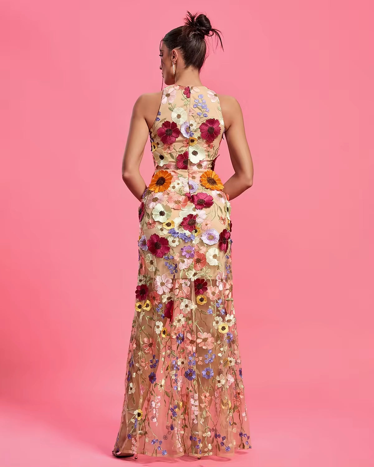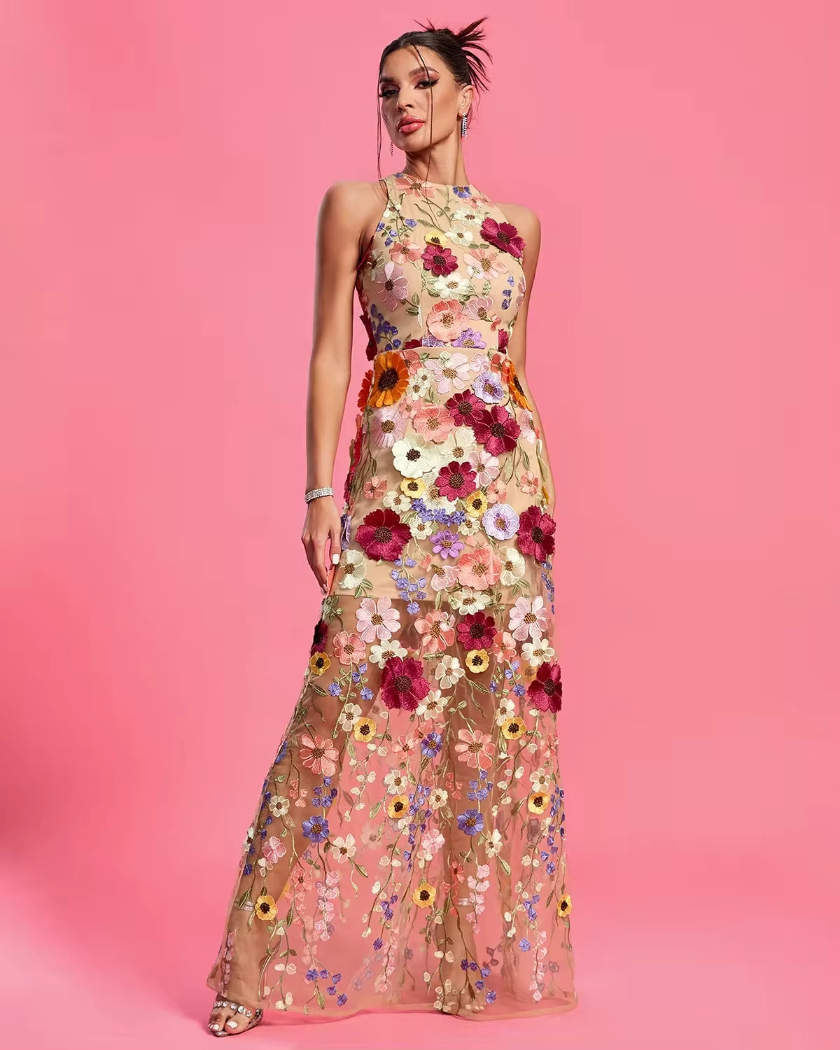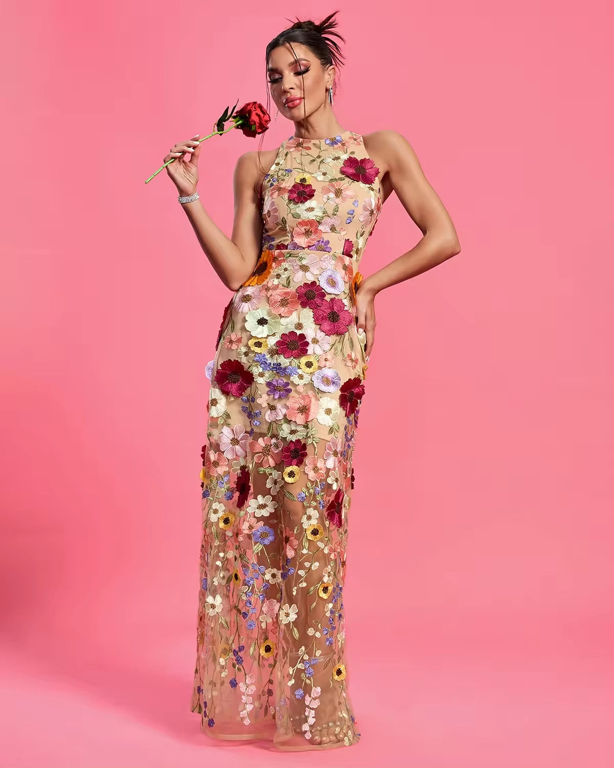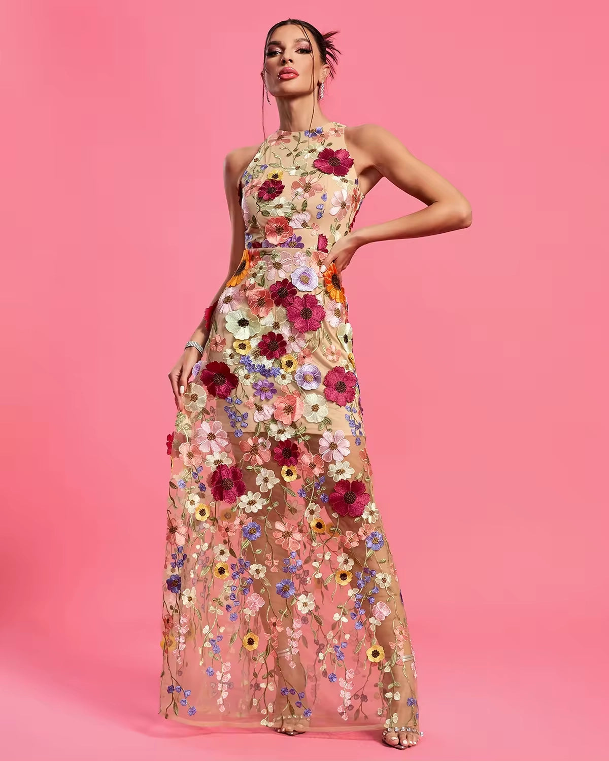Trend4us Elegant Floral Maxi Evening Dress