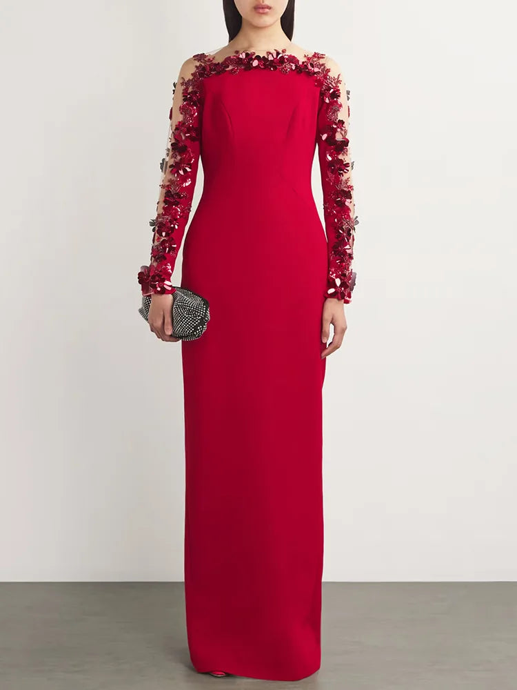 Trend4us Luxe Floral Appliqué Illusion Sleeve Maxi Dress