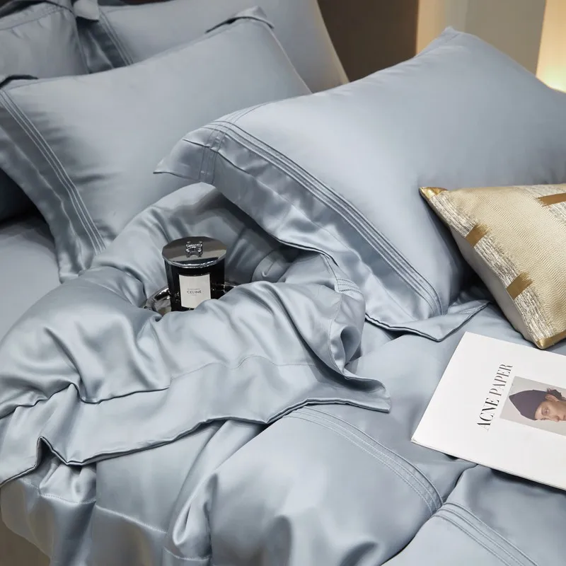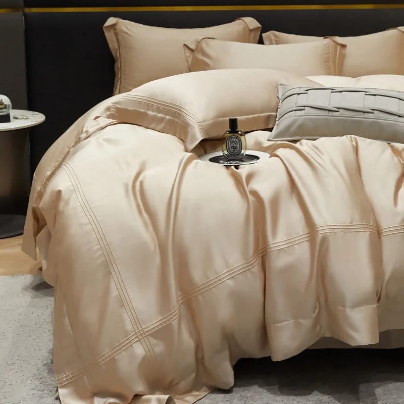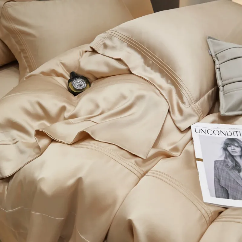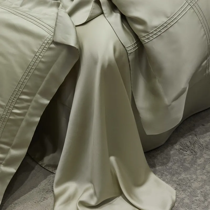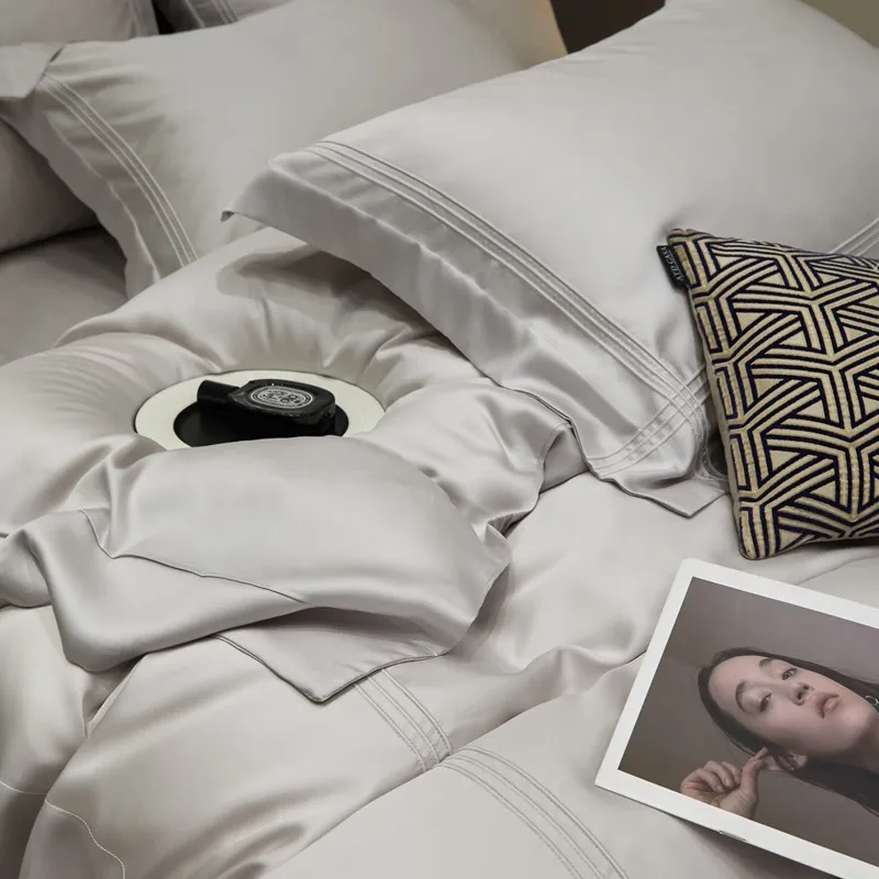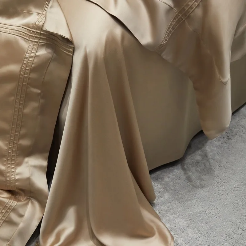 Perfect for those who appreciate understated luxury, this set transforms your bedroom into a serene sanctuary of soft shine and premium craftsmanship.
