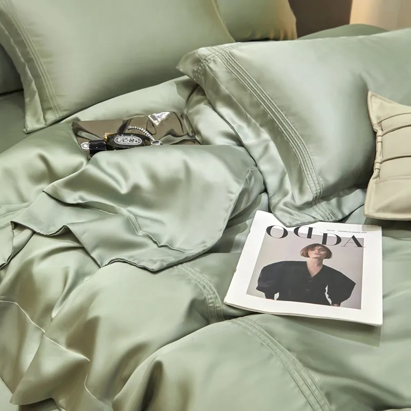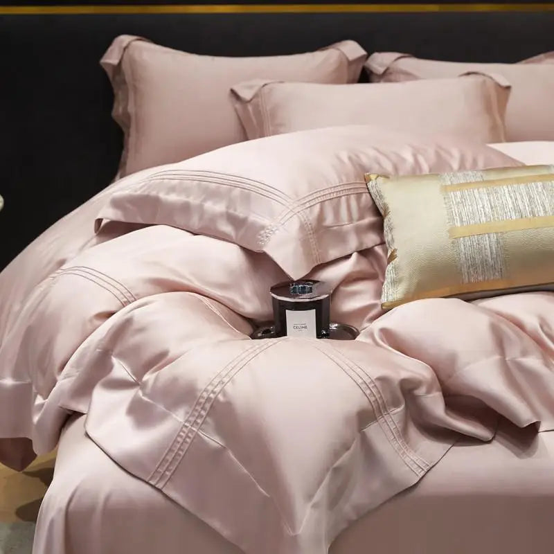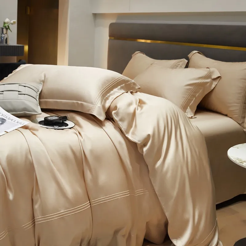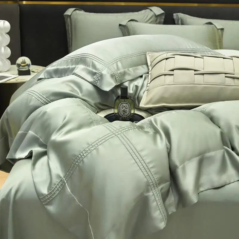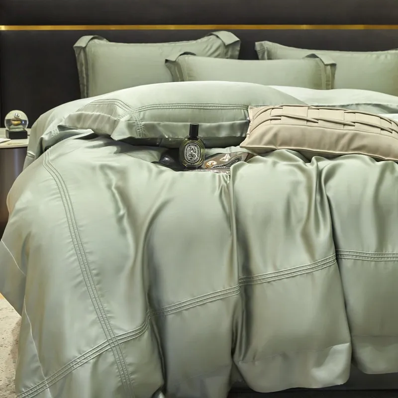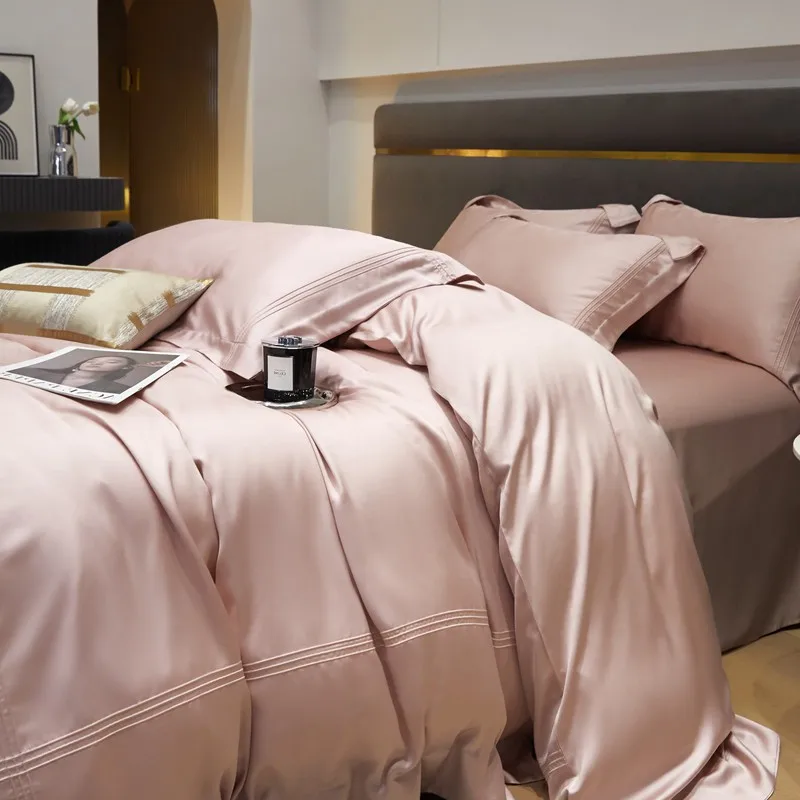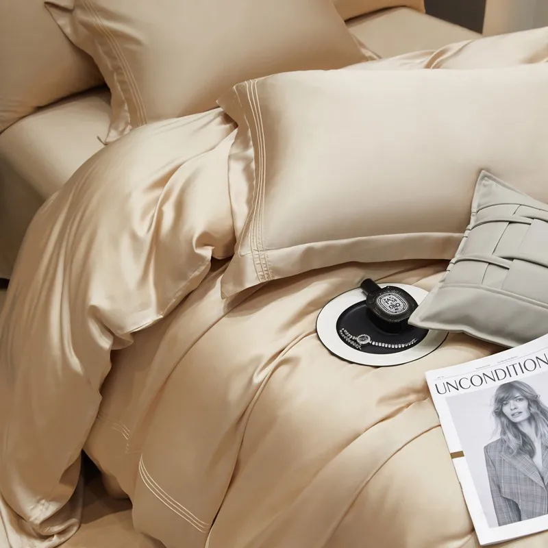 Perfect for those who appreciate understated luxury, this set transforms your bedroom into a serene sanctuary of soft shine and premium craftsmanship.