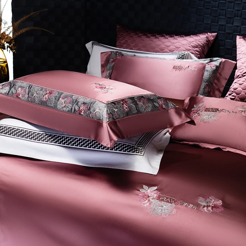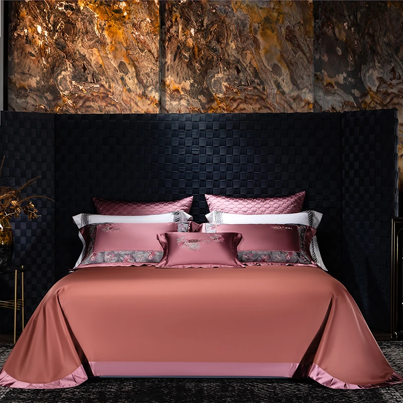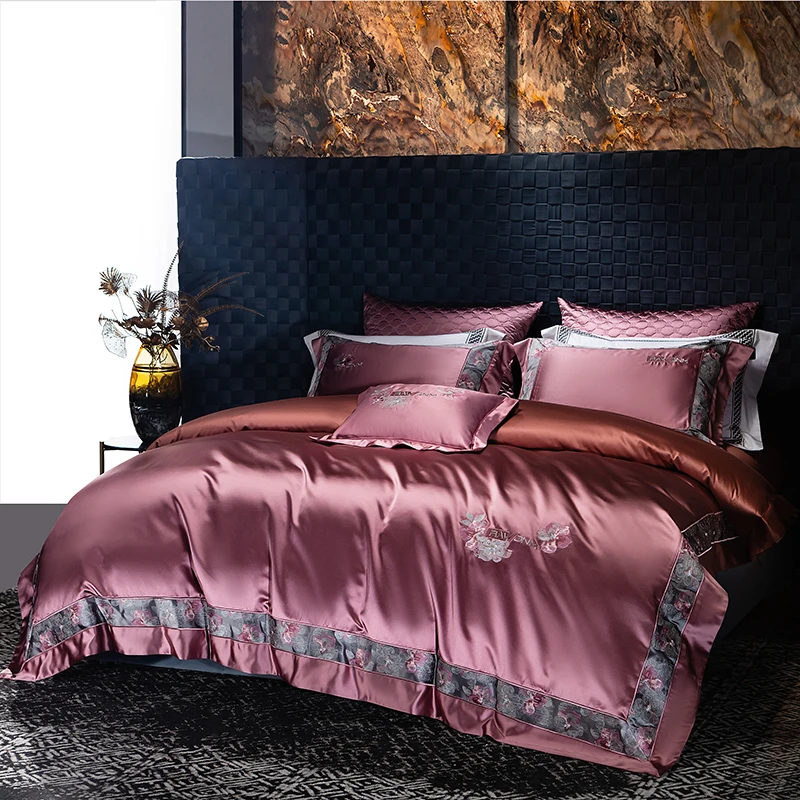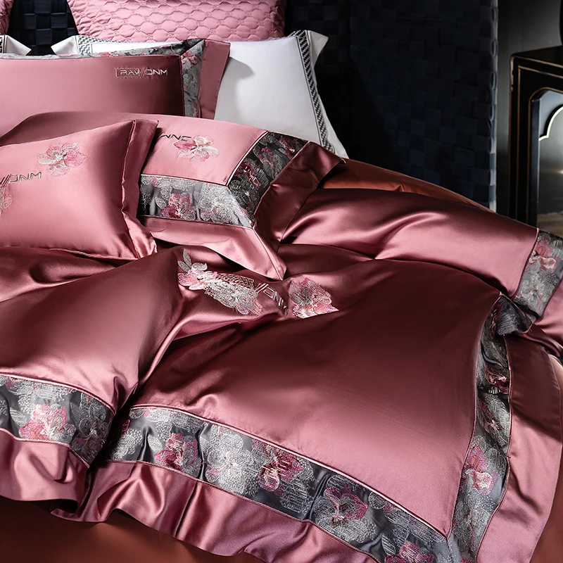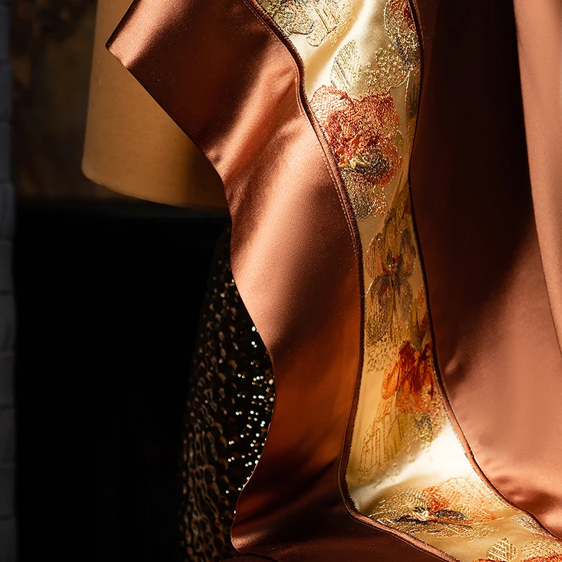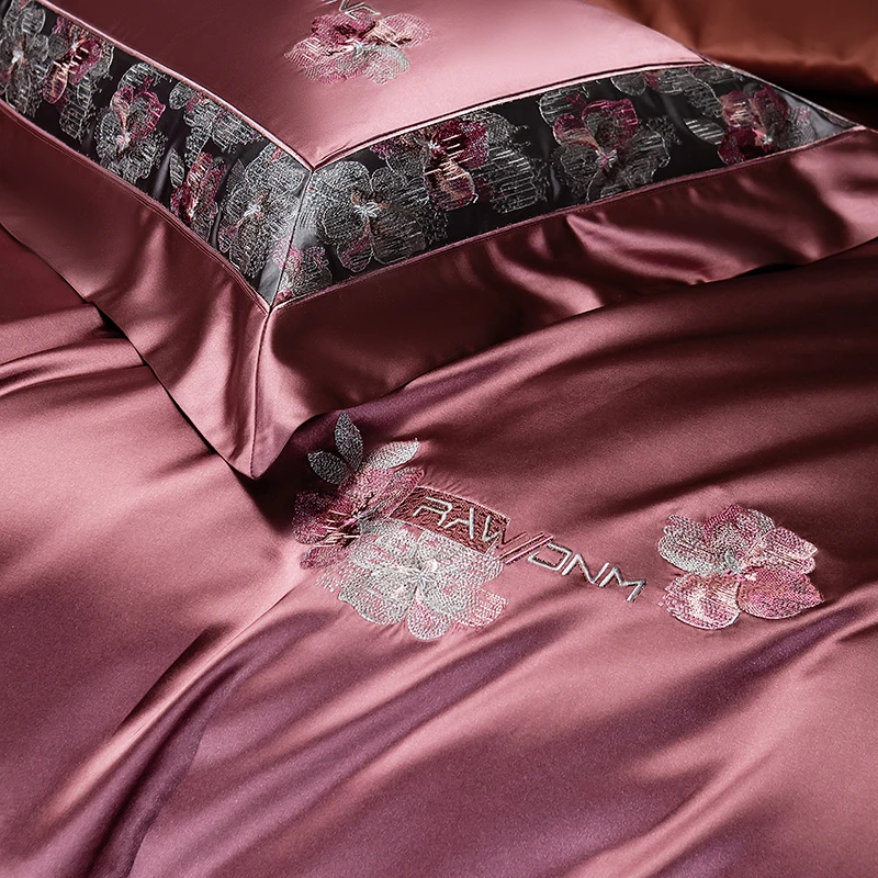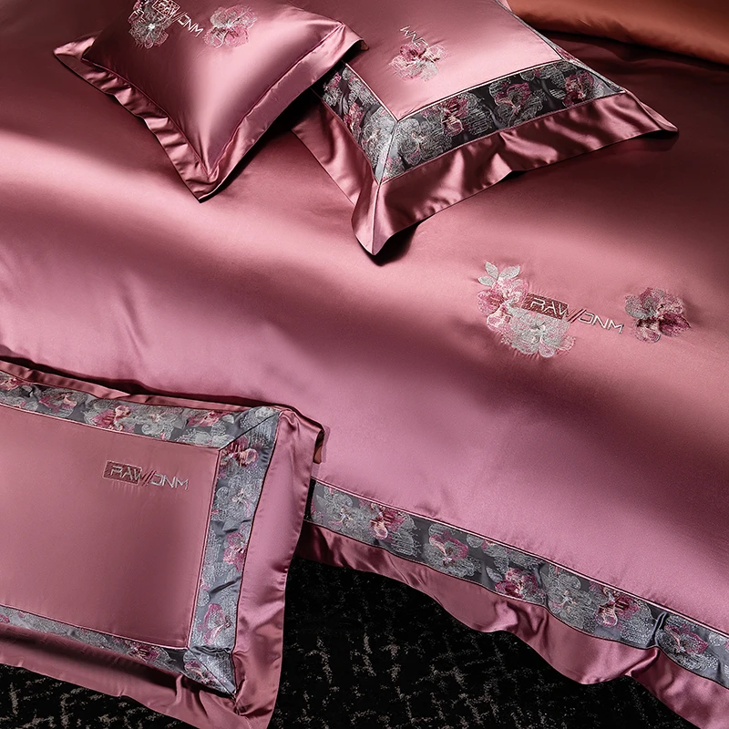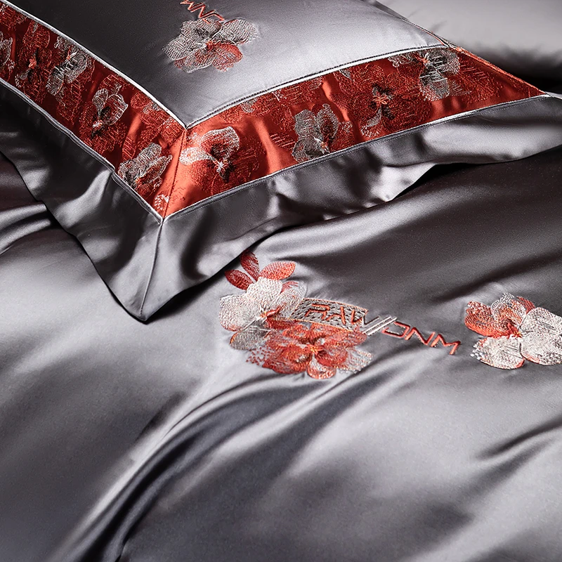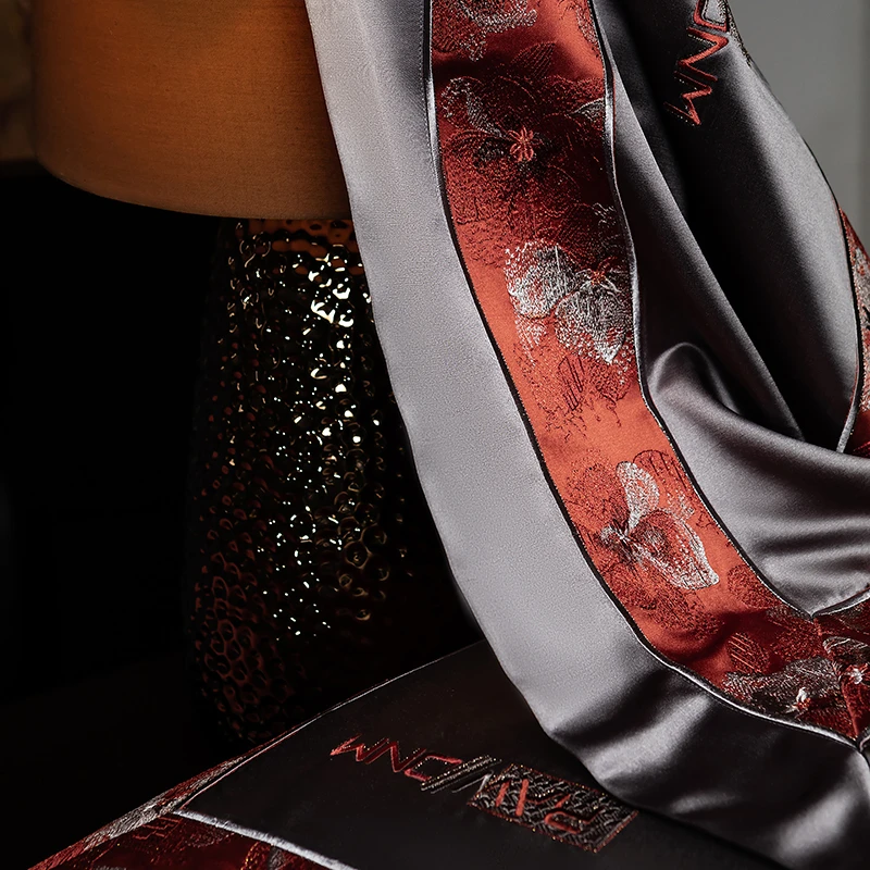 Delicate floral embroidery, intricate jacquard border accents, and a lustrous drape evoke a regal aesthetic — perfect for contemporary or classic interiors. Available in four rich tones — Golden Bronze, Charcoal Gray, Blush Rose, and Copper Amber — this bedding set transforms your bedroom into a sanctuary of sophistication and comfort.