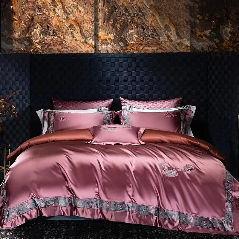 Trend4us Luxe Silk Embroidered Royal Bedding Set