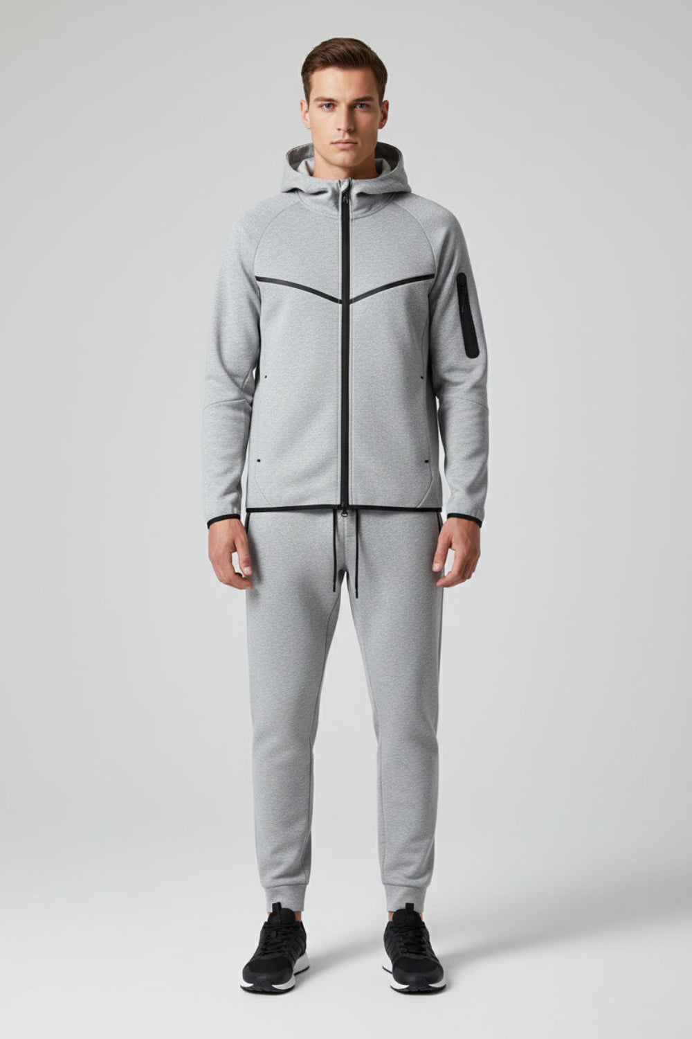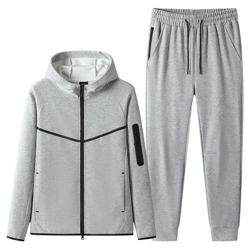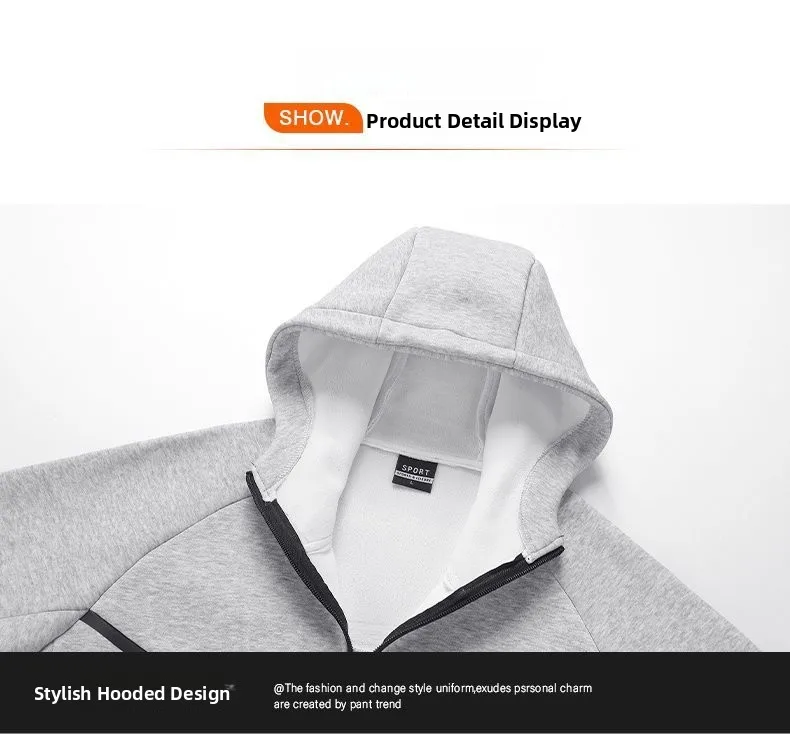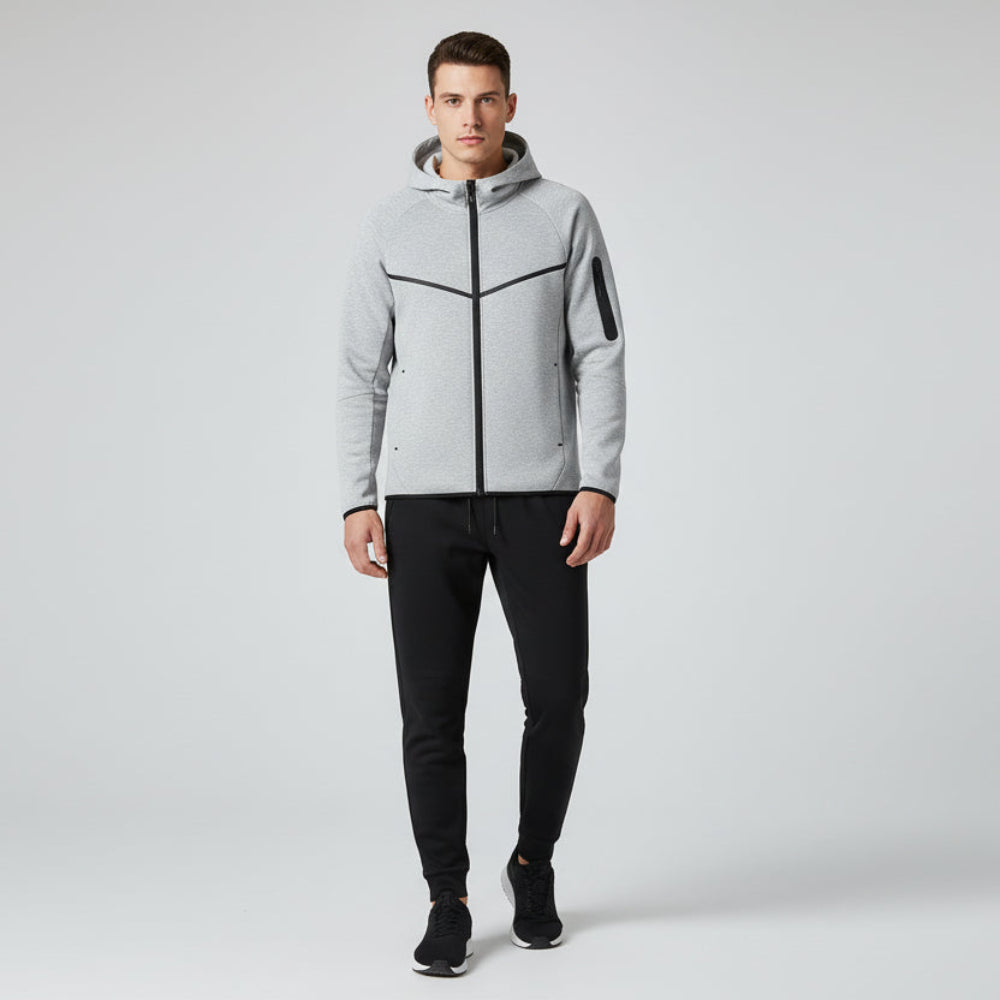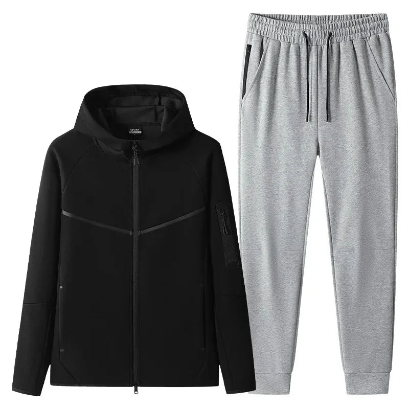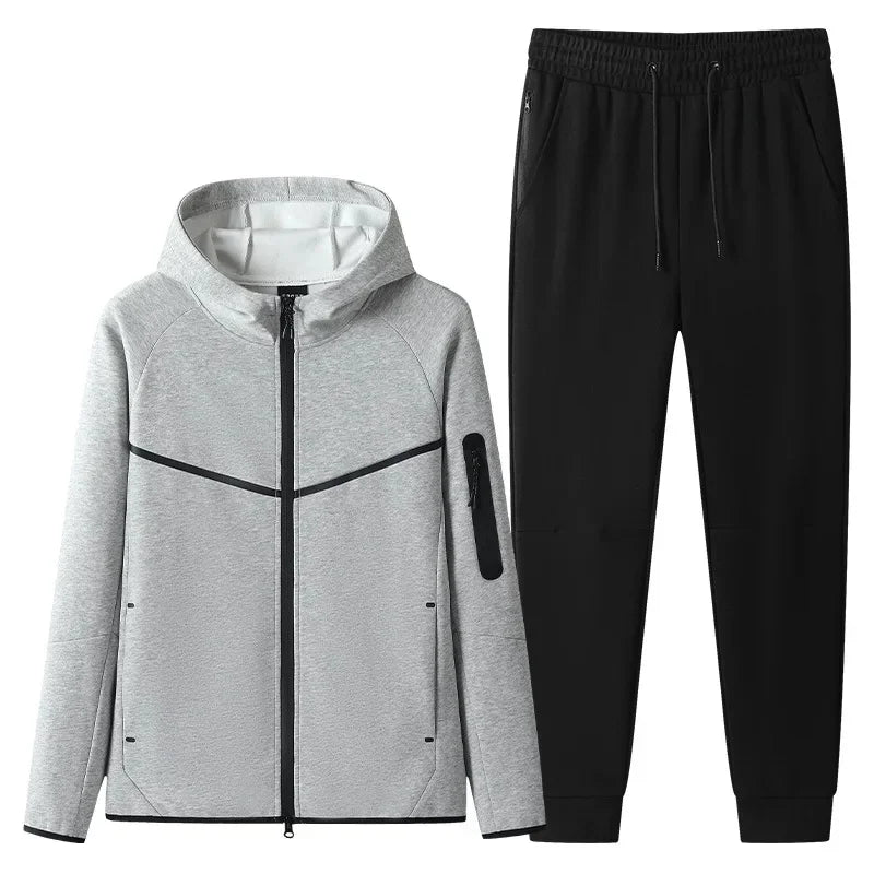 Trend4us Men's Modern Zip-Up Hooded Tracksuit Set - Jacket & Joggers