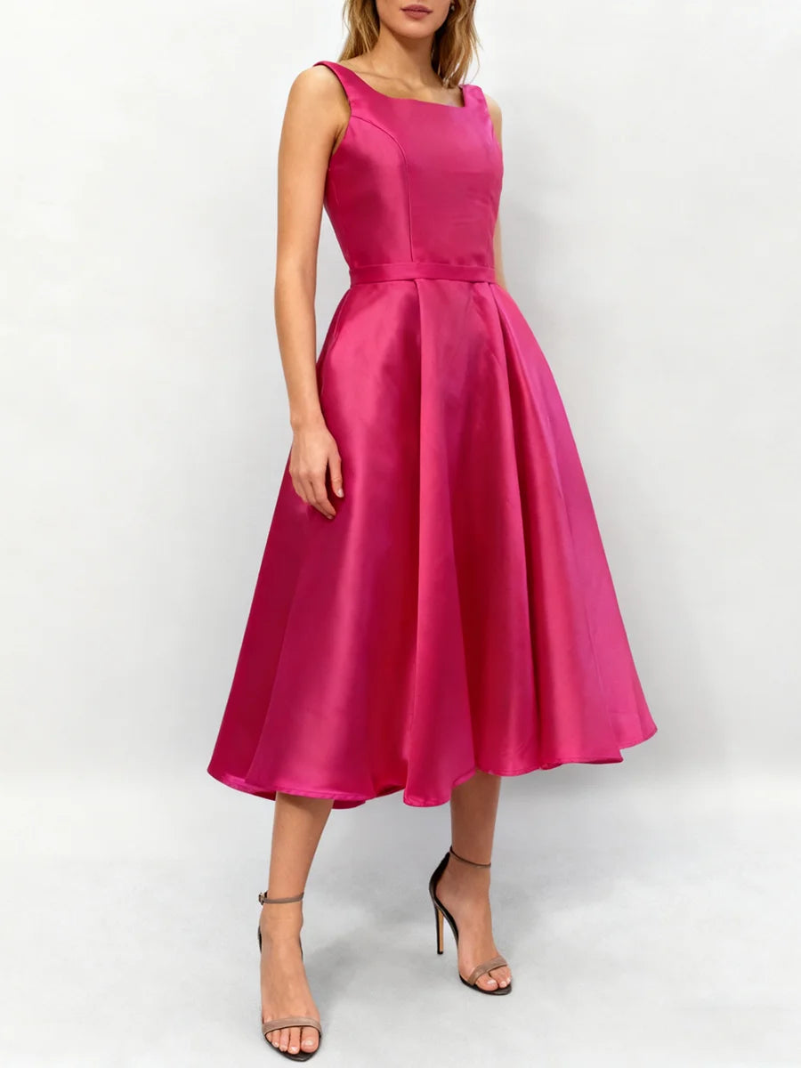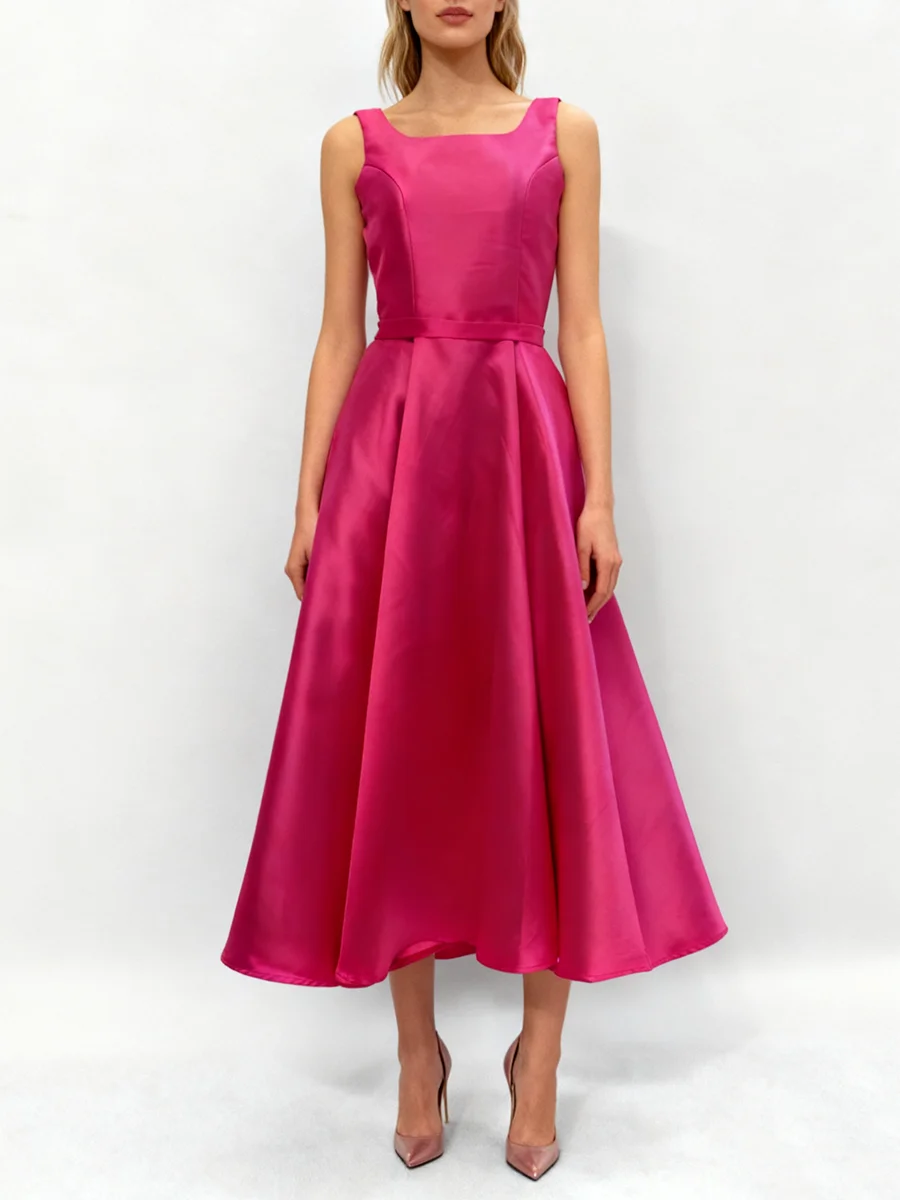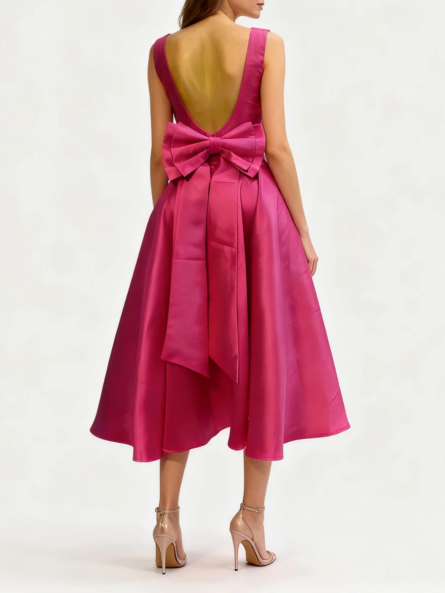 Trend4us Elegant Bow-Back Satin Midi Dress
