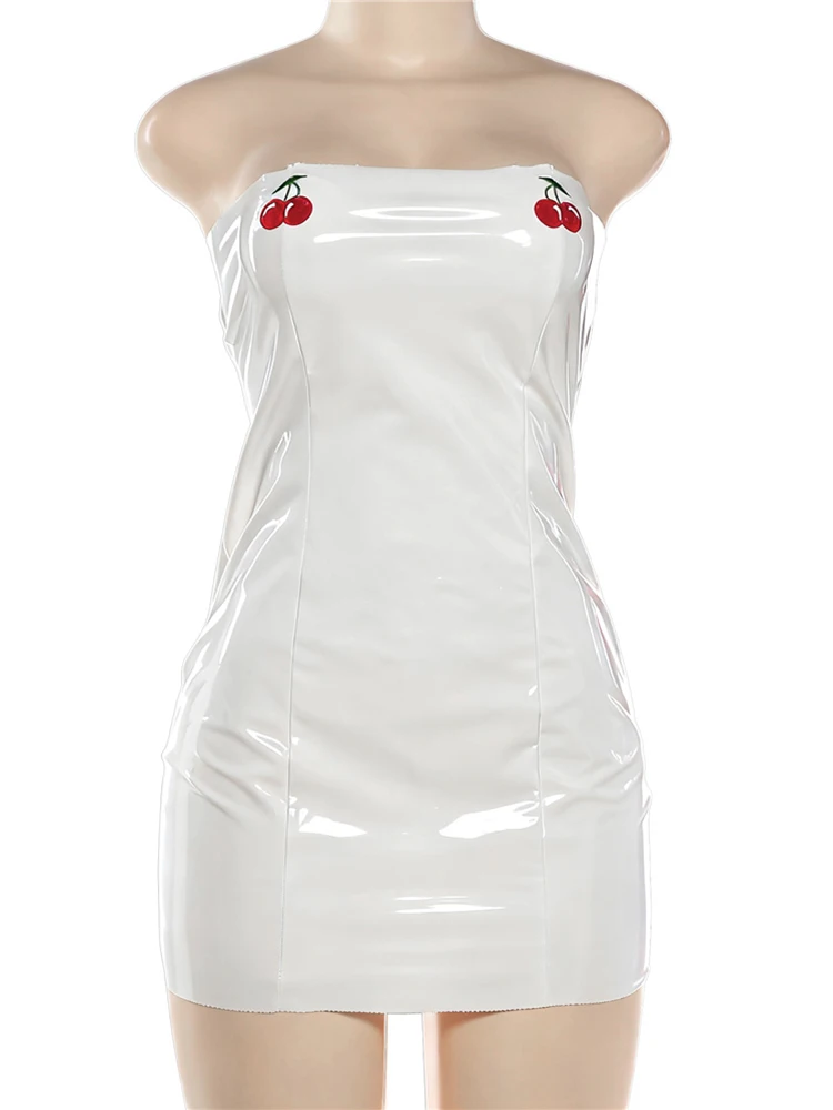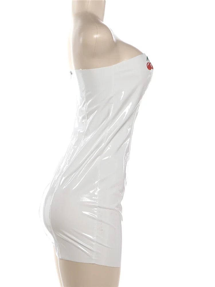 Trend4us Cherry Charm Strapless Patent Mini Dress