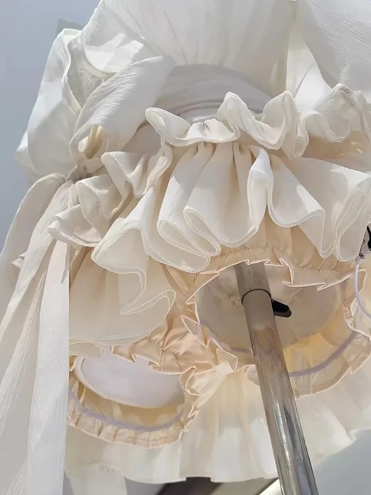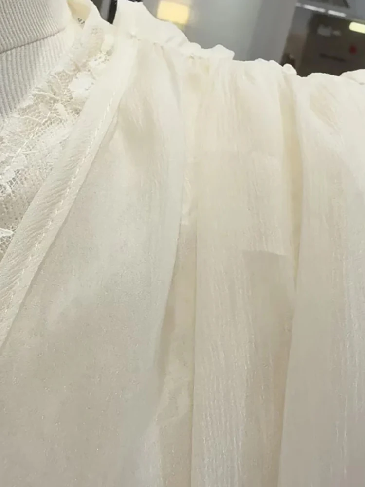 Sleeves: Long Puff Sleeves with Lace Cuffs
