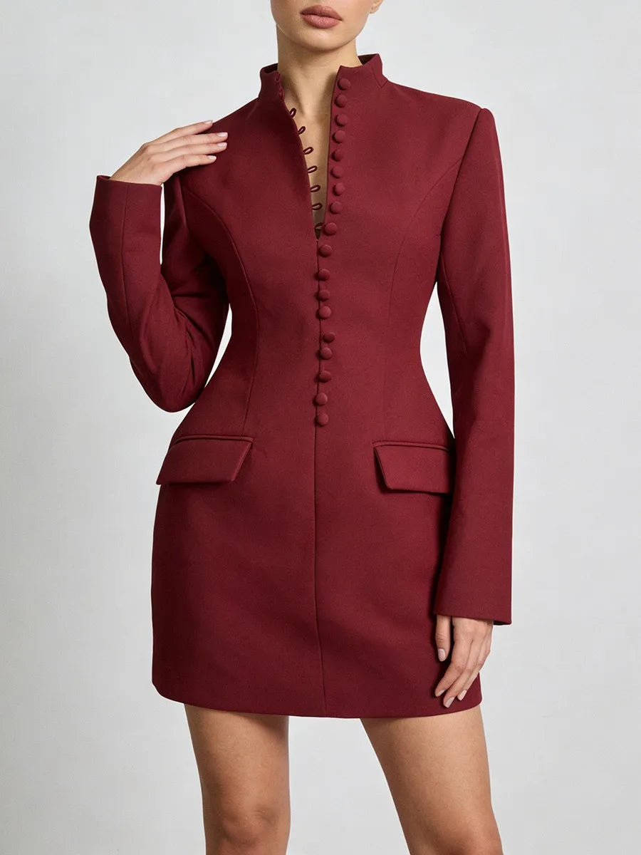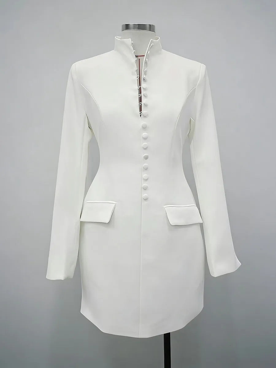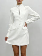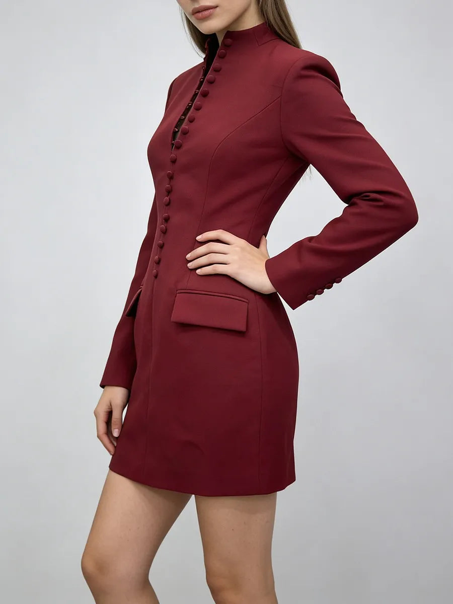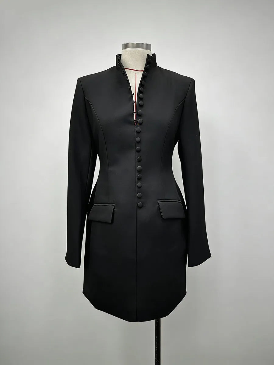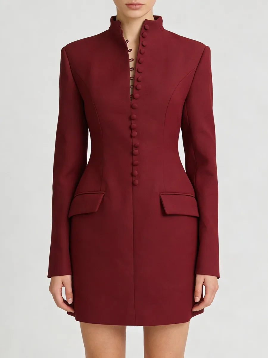 Trend4us Luxe Buttoned High-Neck Tailored Blazer Dress