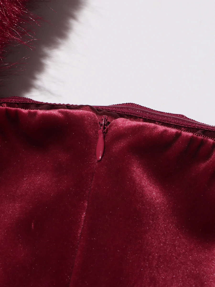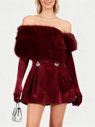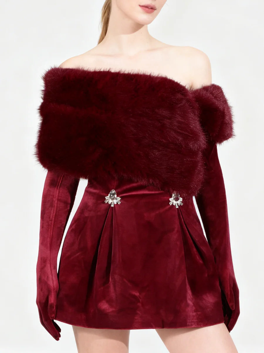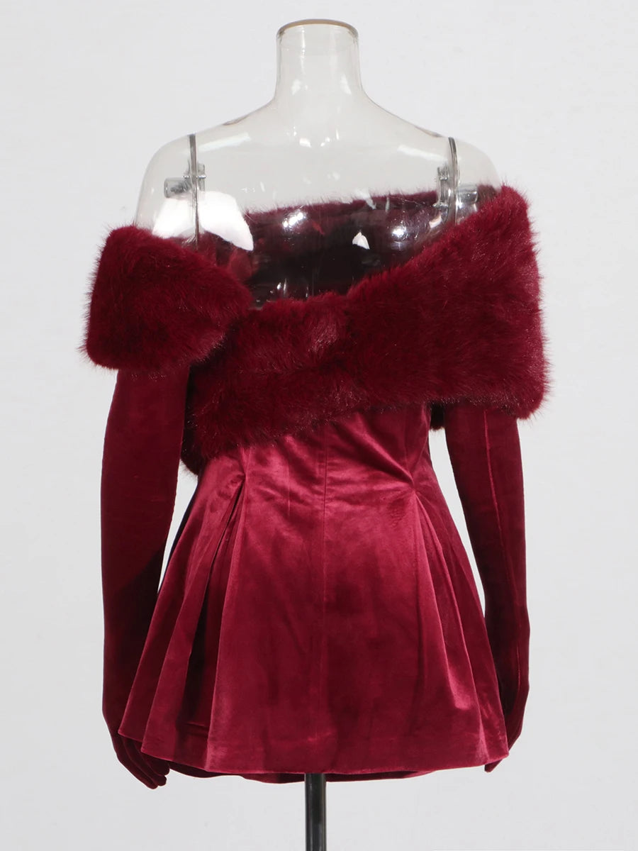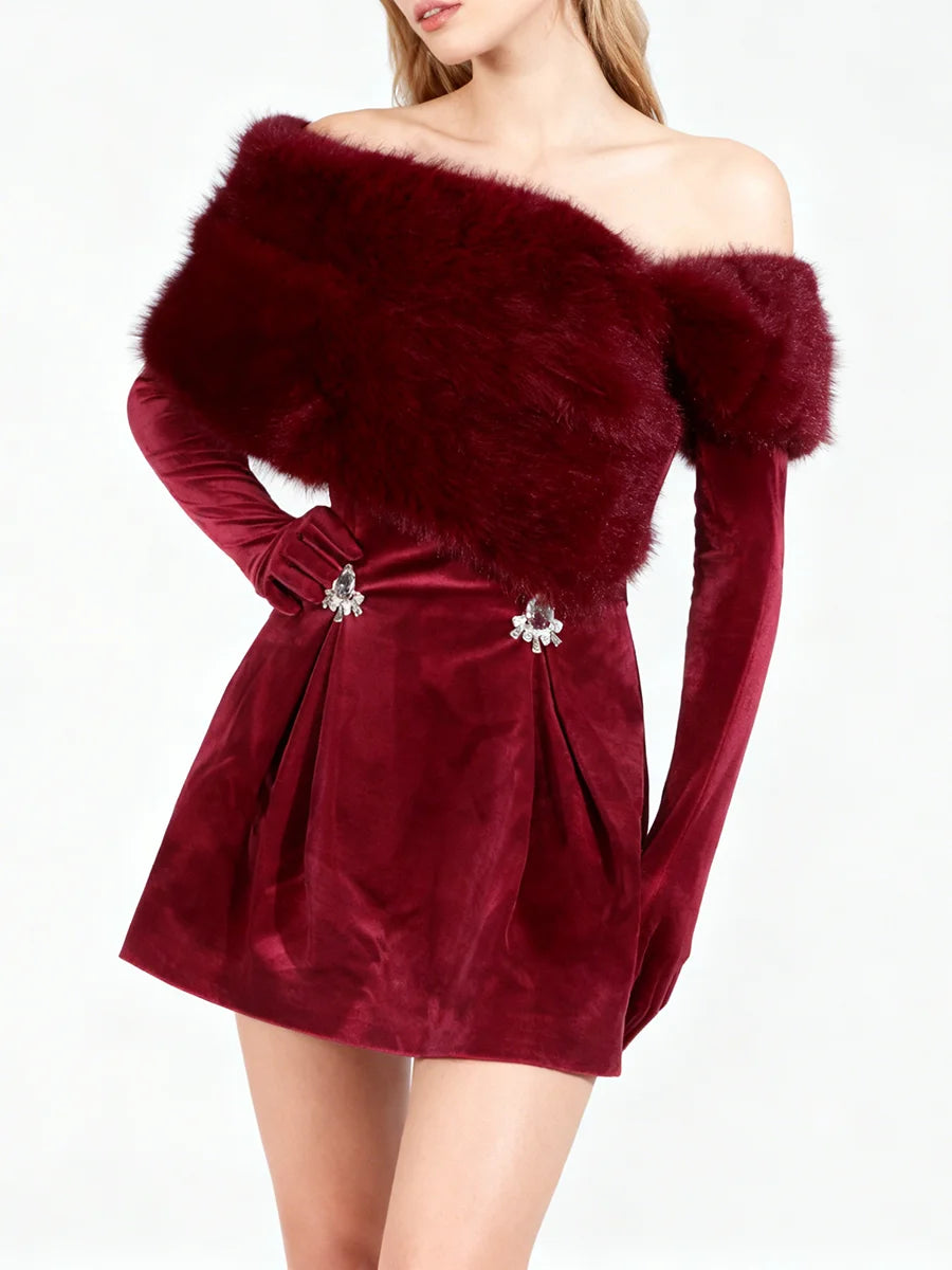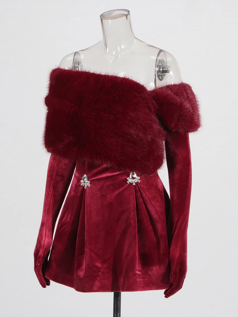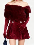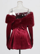 Trend4us Luxe Faux Fur Velvet Off-Shoulder Mini Dress