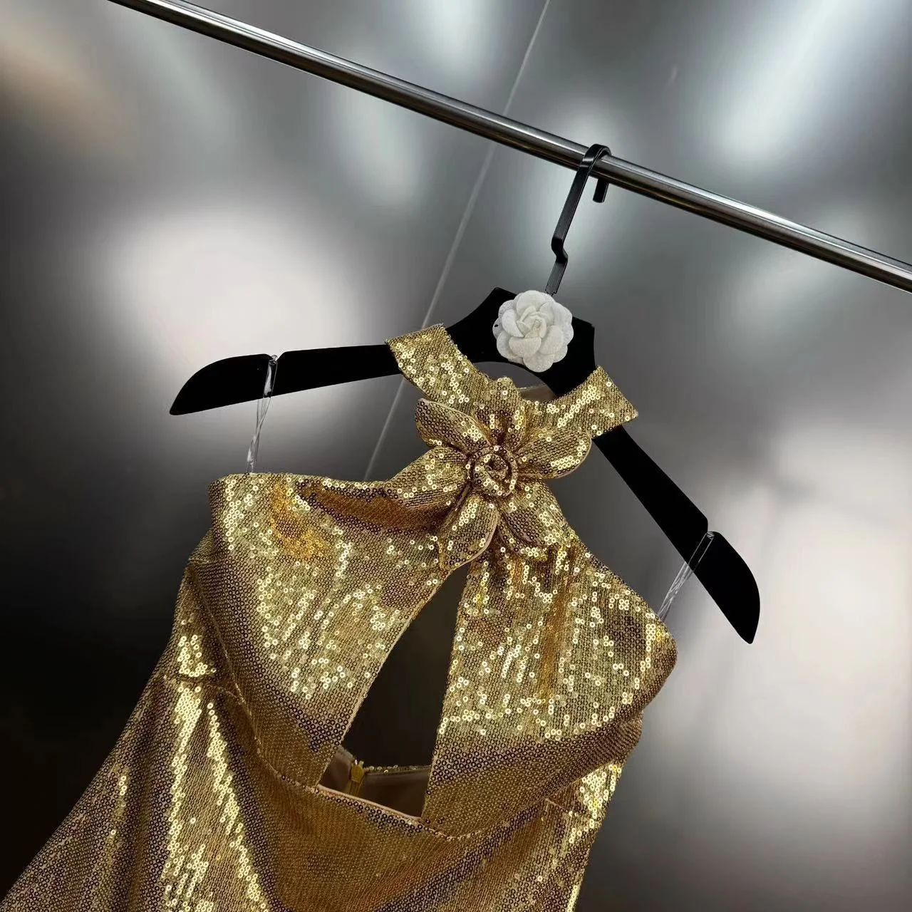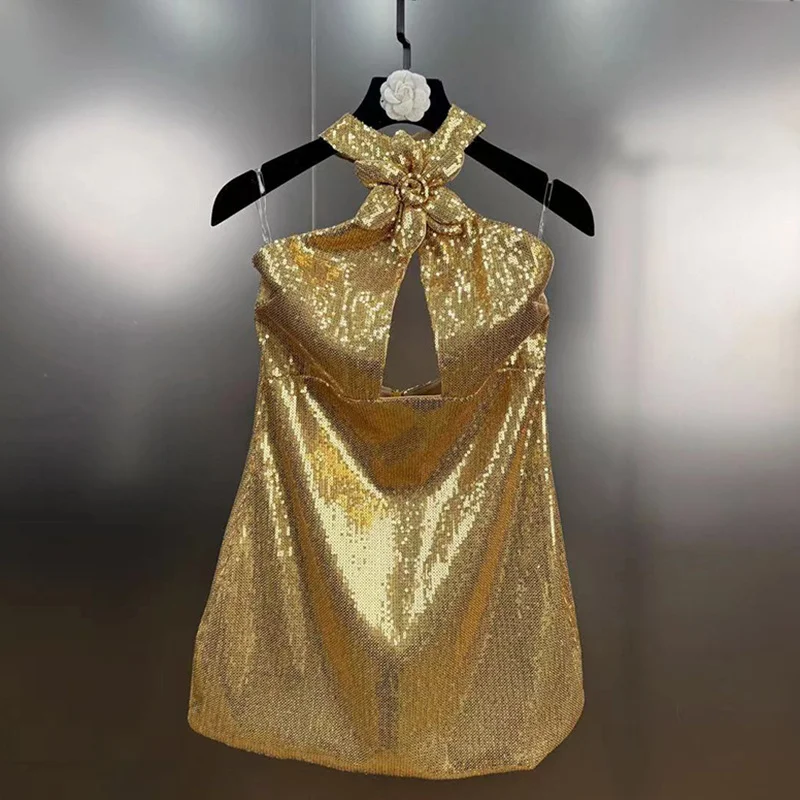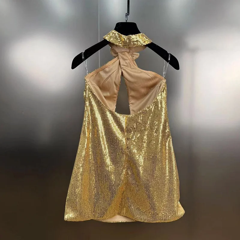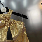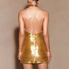 Trend4us Luxe Gold Sequin Bow-Halter Mini Dress