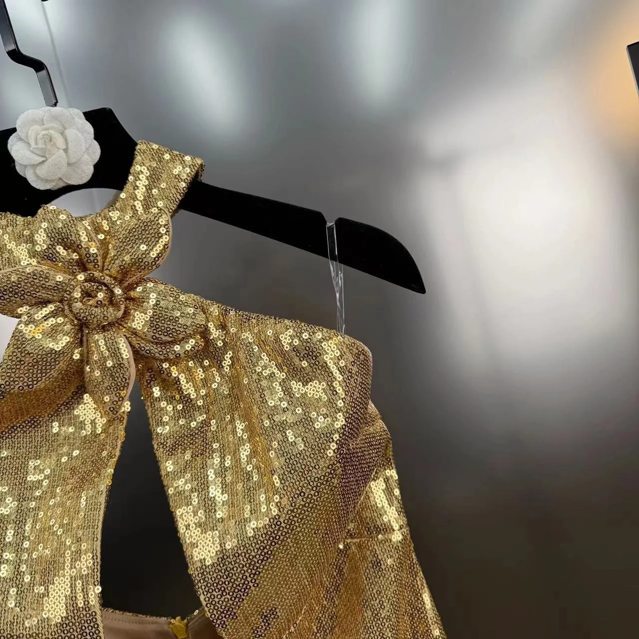 Fabric: Premium gold sequin mesh