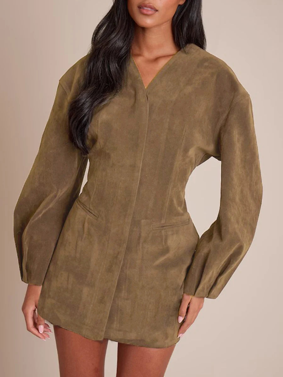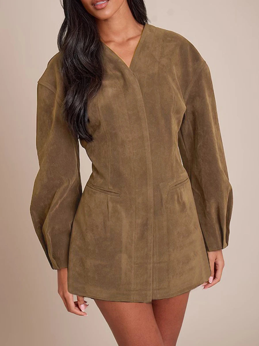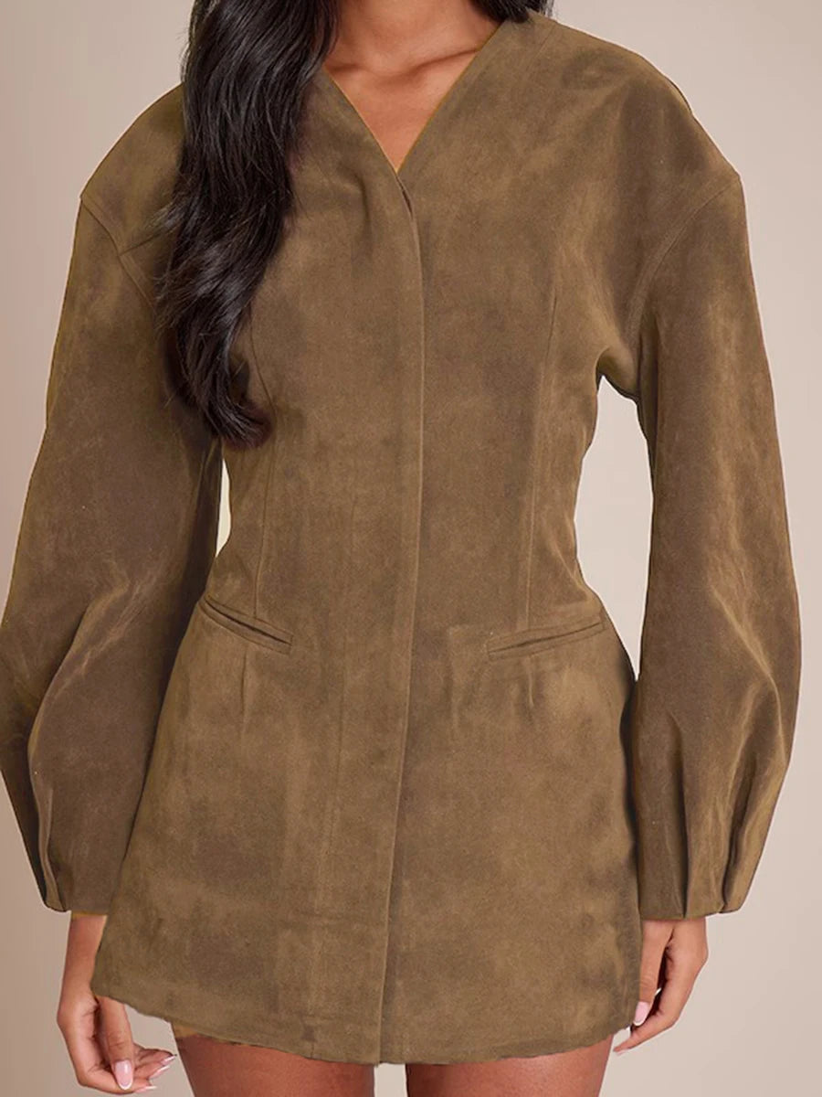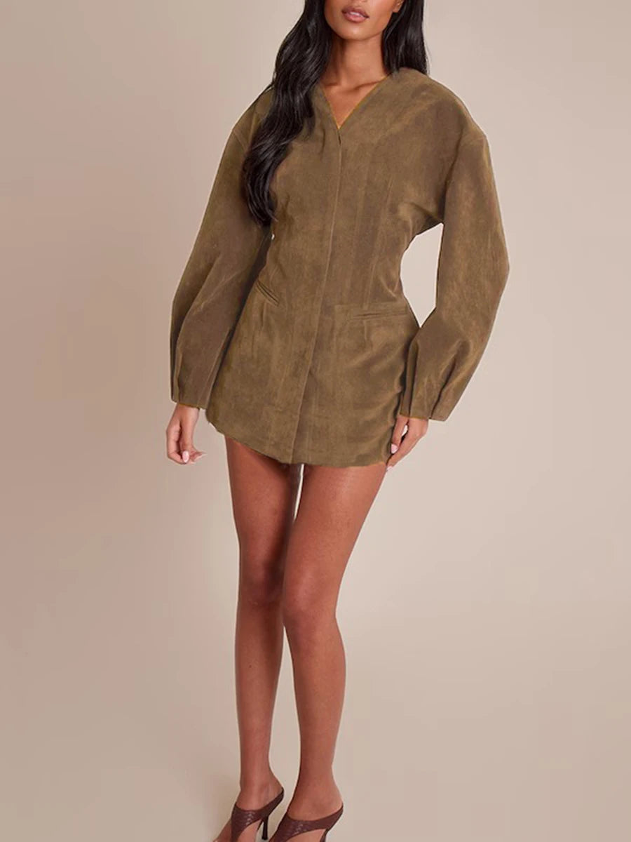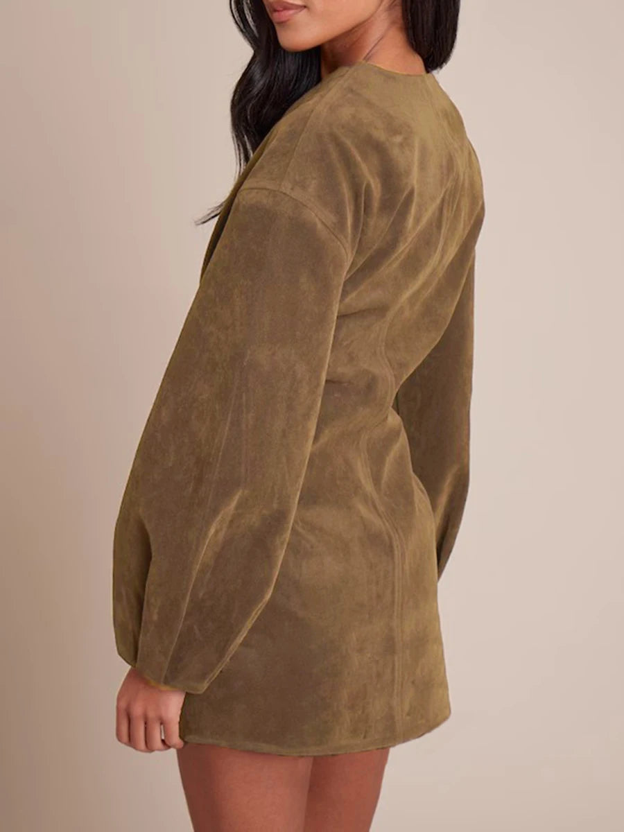 Trend4us Luxe Suede Structured Mini Blazer Dress
