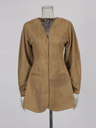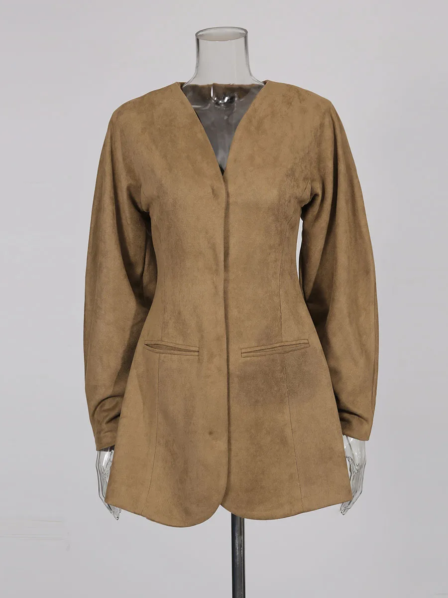 Elevate your wardrobe with the Trend4us Luxe Suede Structured Mini Blazer Dress, a timeless fusion of elegance and contemporary edge. Crafted from premium faux suede, this design offers a smooth, velvety touch and a sophisticated silhouette that beautifully sculpts the body.