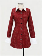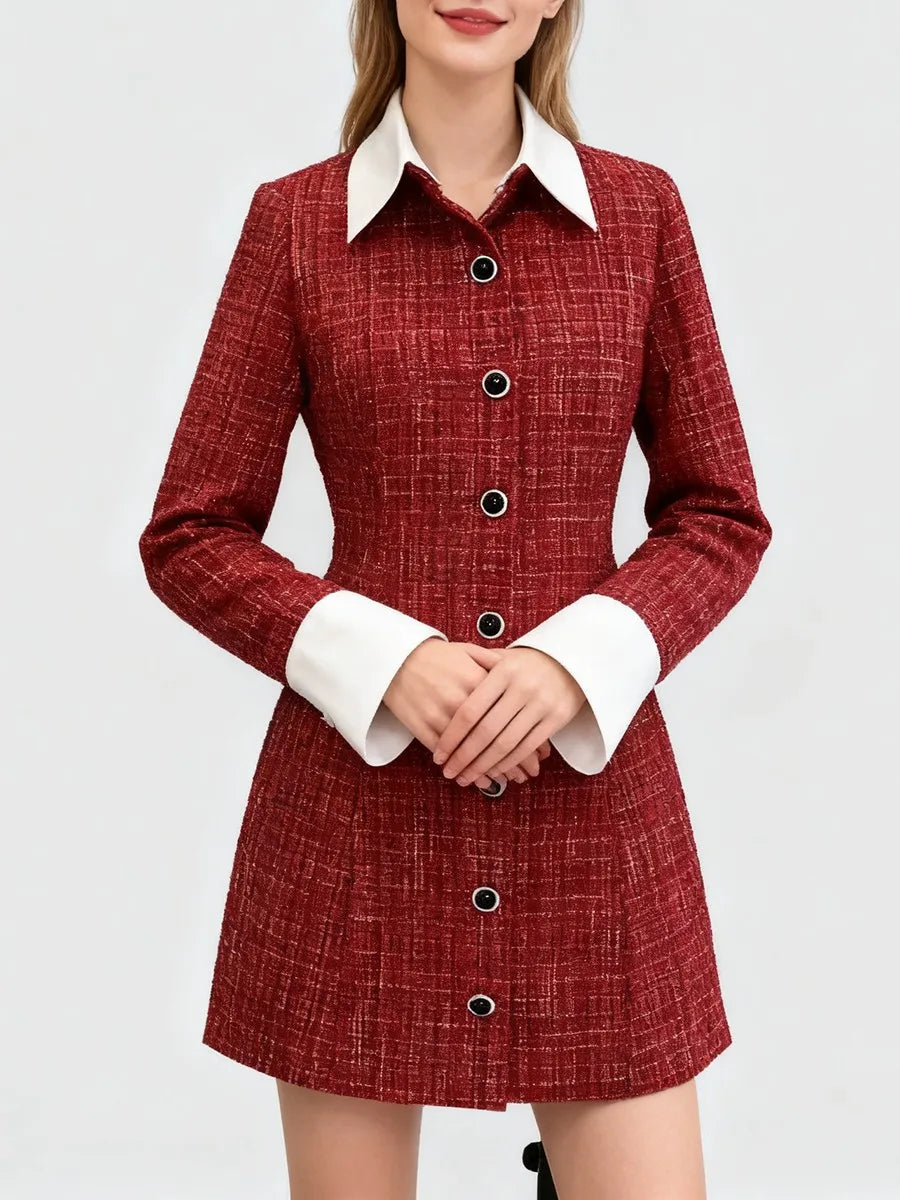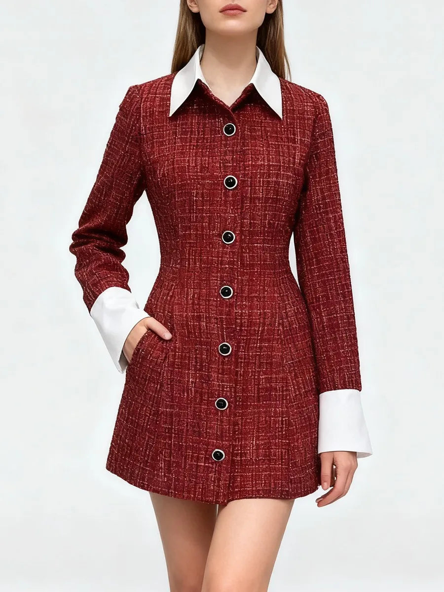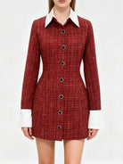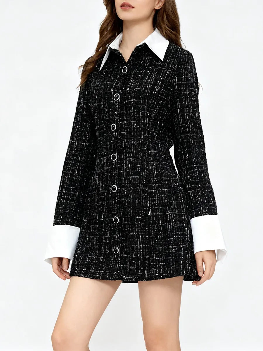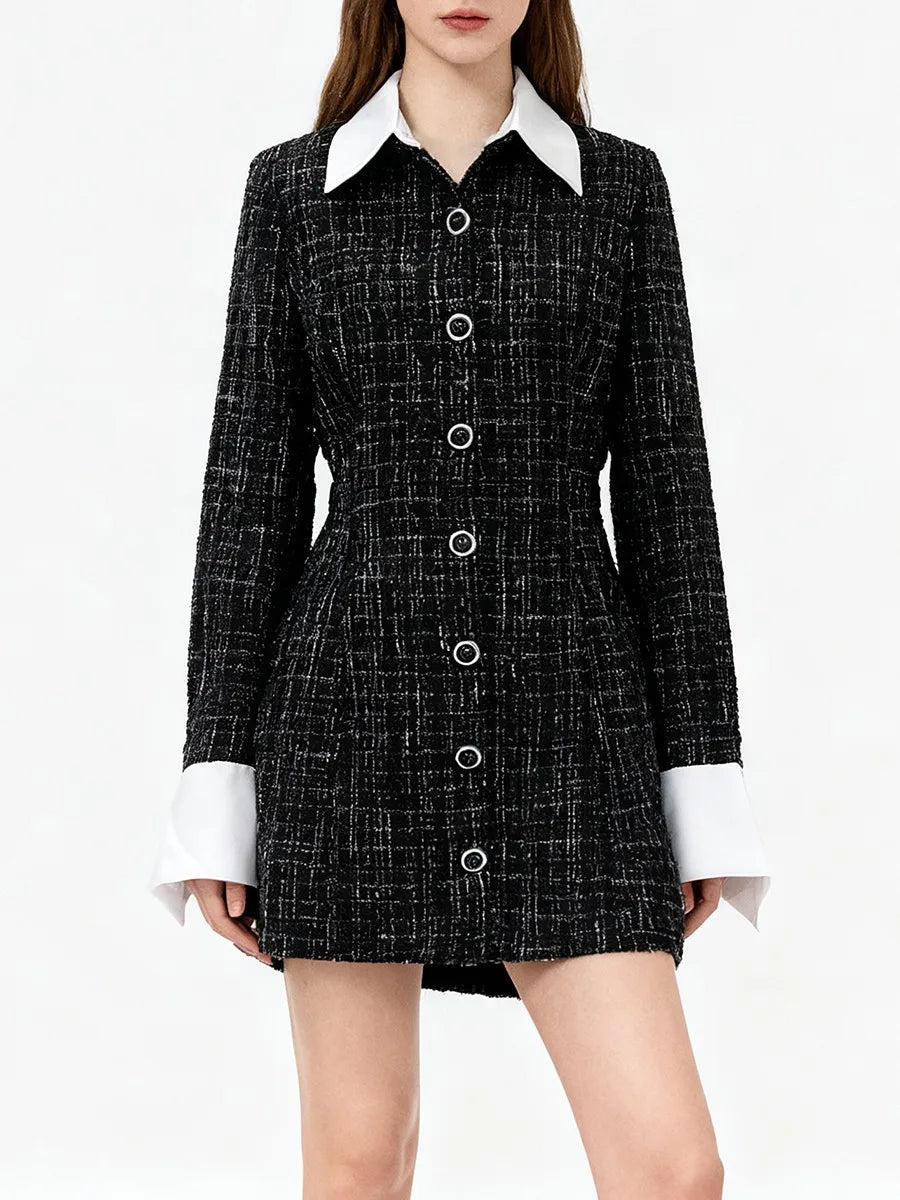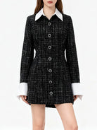 Trend4us Luxe Tweed Contrast Collar Button-Front Mini Dress