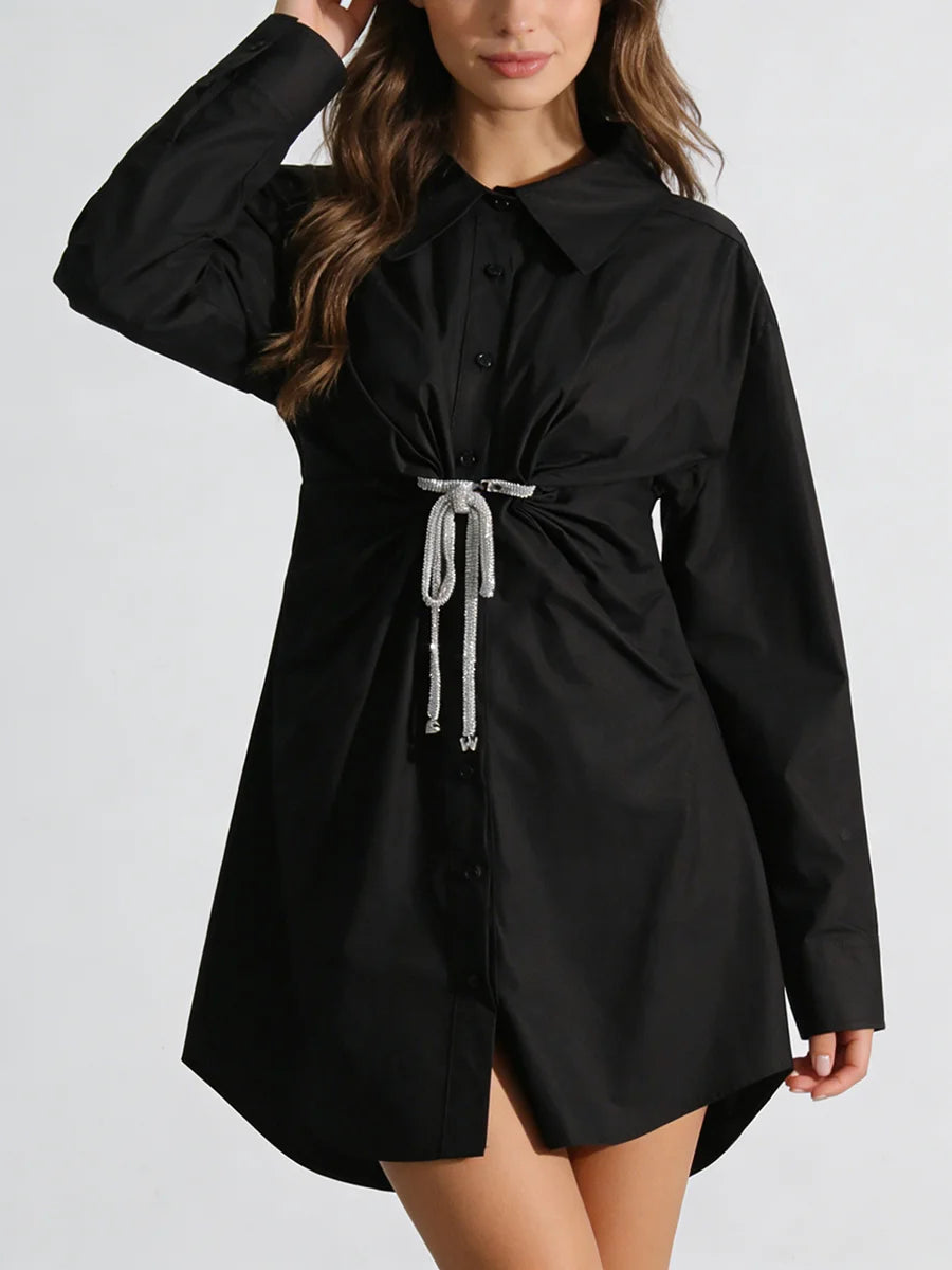 Trend4us Modern Crystal Cinched Waist Shirt Dress