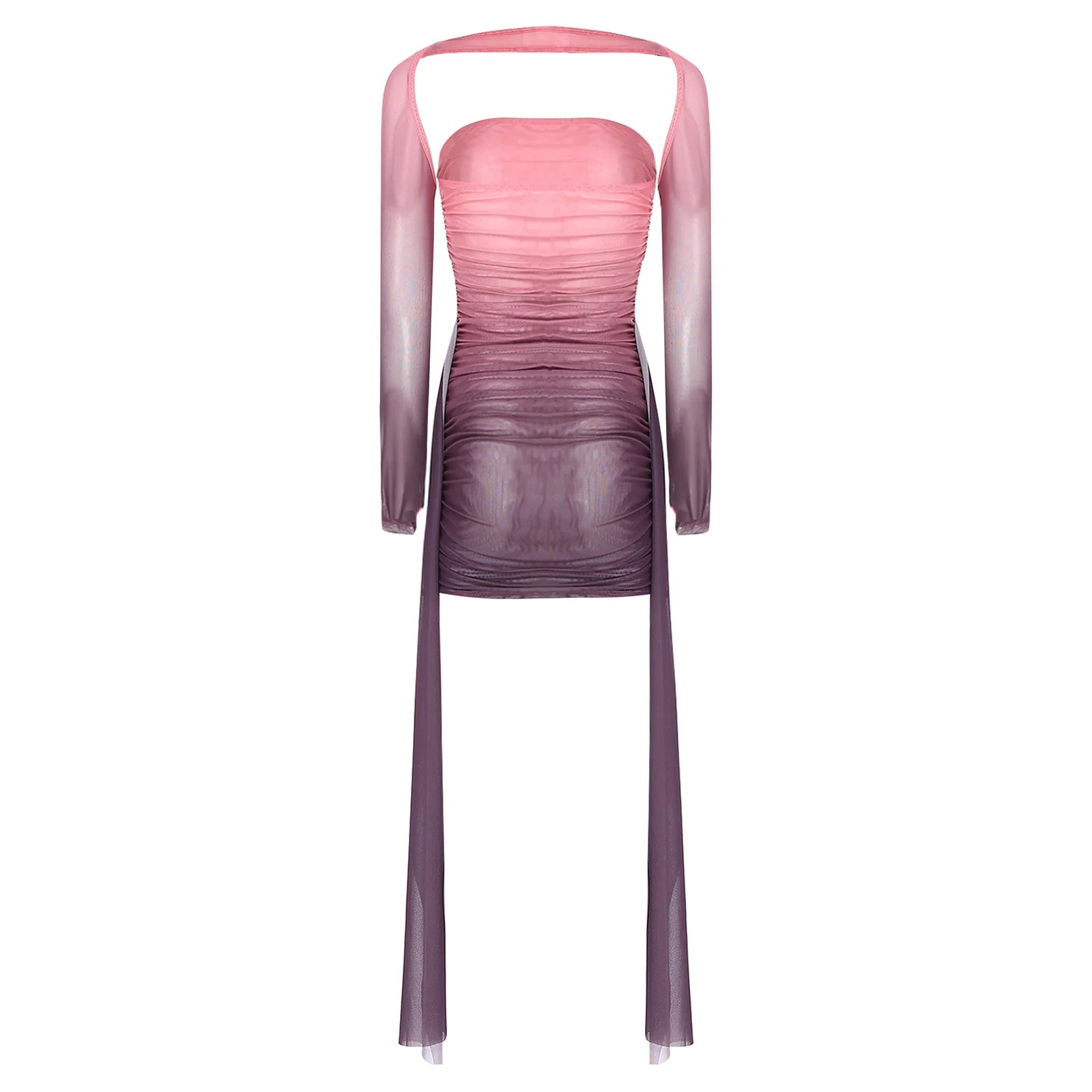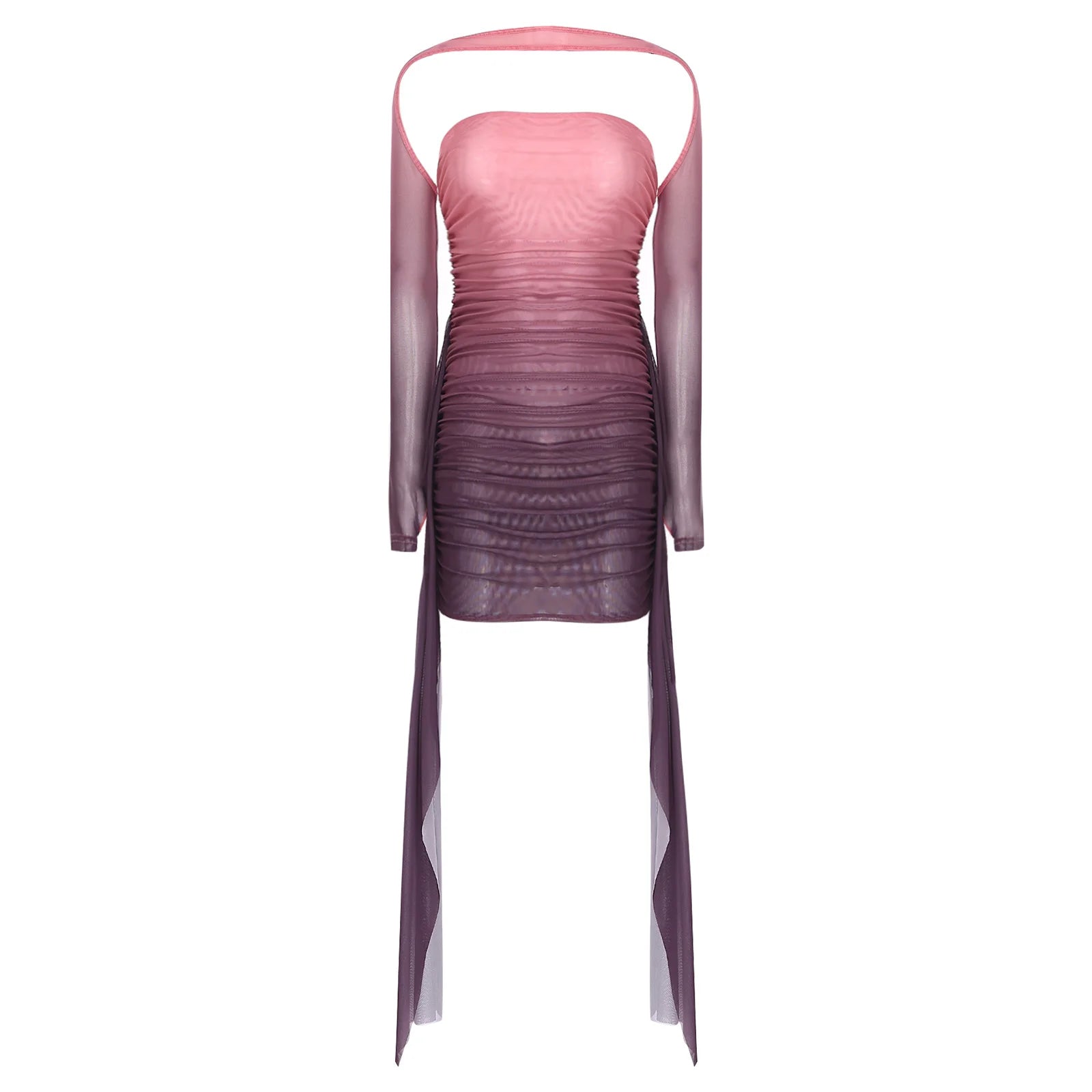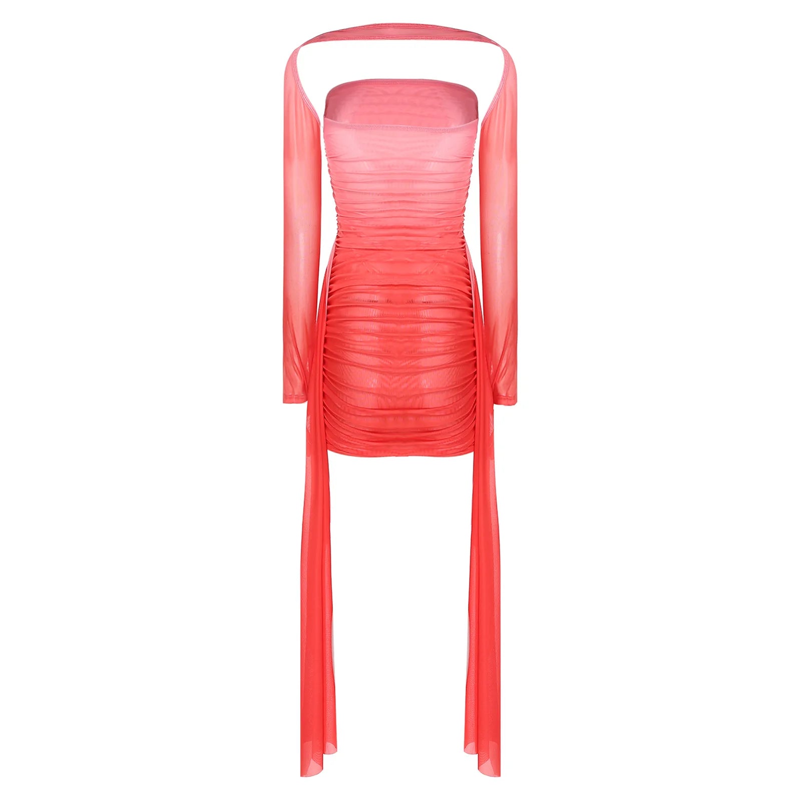 Trend4us Sculpted Ruched Sheer Mesh Mini Dress