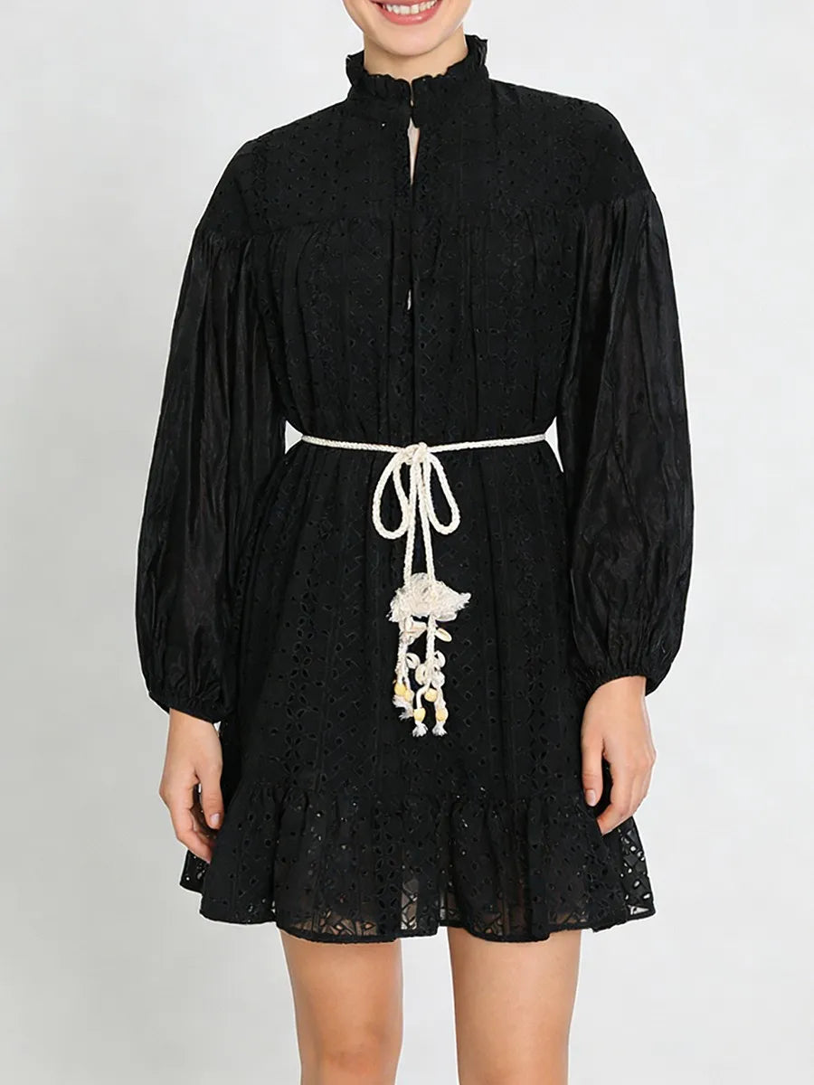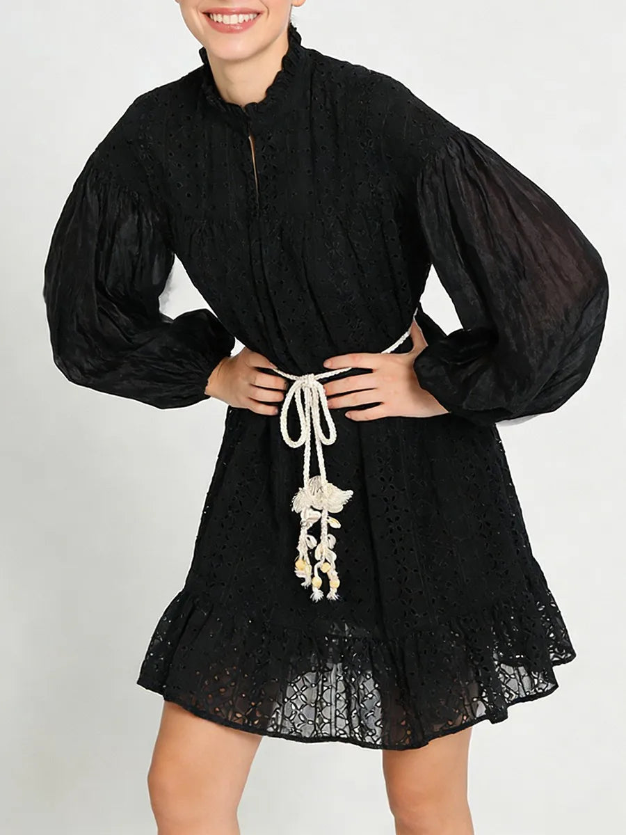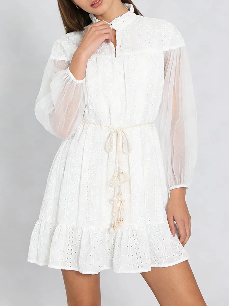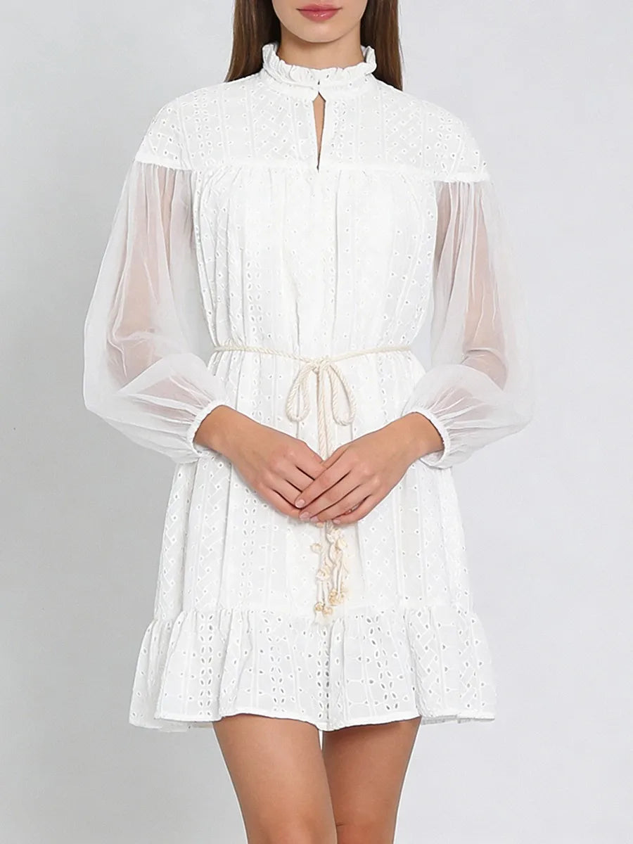 Sheer Embroidered Lace Mini Dress