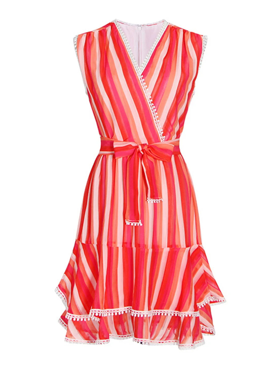 This casual-chic mini dress is your go-to for effortless summer style. The striped pattern and lace trim create a fresh, feminine look that works for everything from weekend brunches to casual dates. Pair with espadrilles and a straw bag for daytime charm, or dress up with wedges and delicate jewelry for evening gatherings. Layer with a denim jacket for cooler evenings.