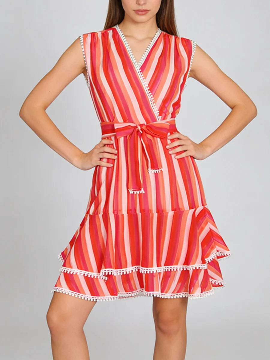 Trend4us Striped Lace-Trim Ruffle Mini Dress