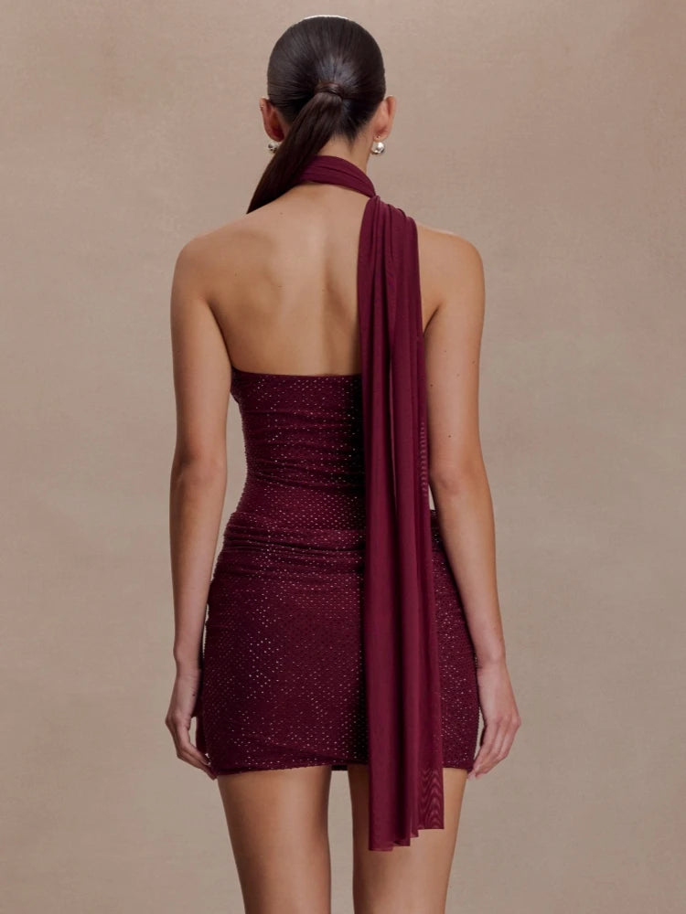 Trend4us Luxe Glitter Halter Scarf Wrap Mini Dress