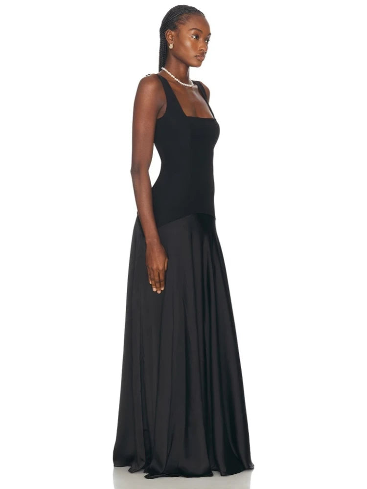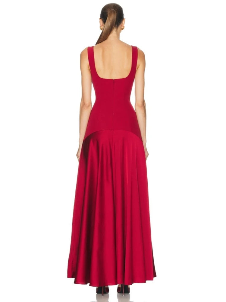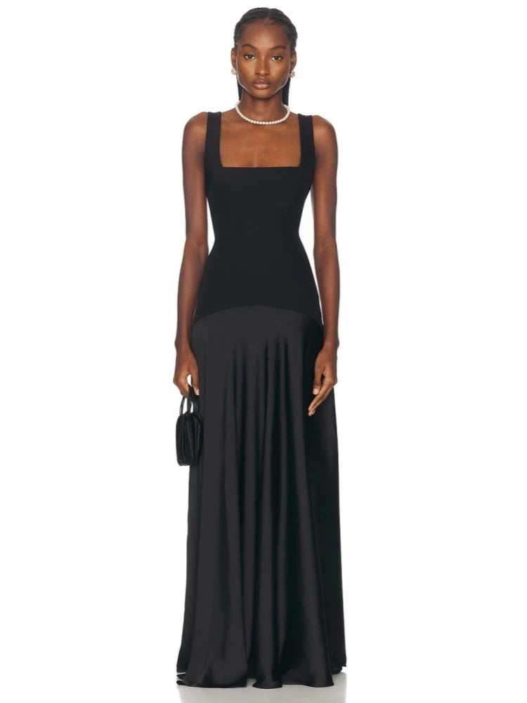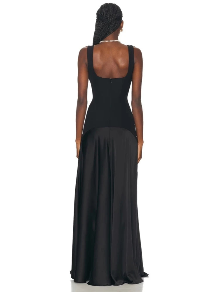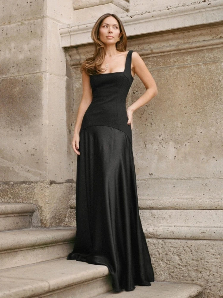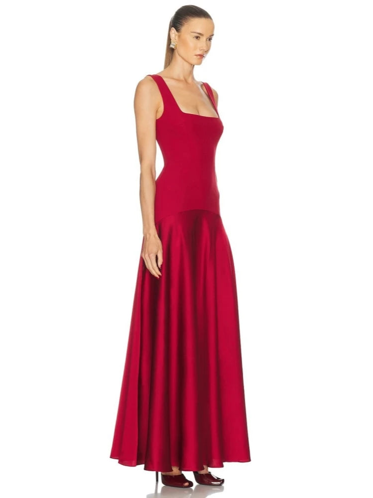 Trend4us Elegant Square-Neck Sculpted Maxi Gown