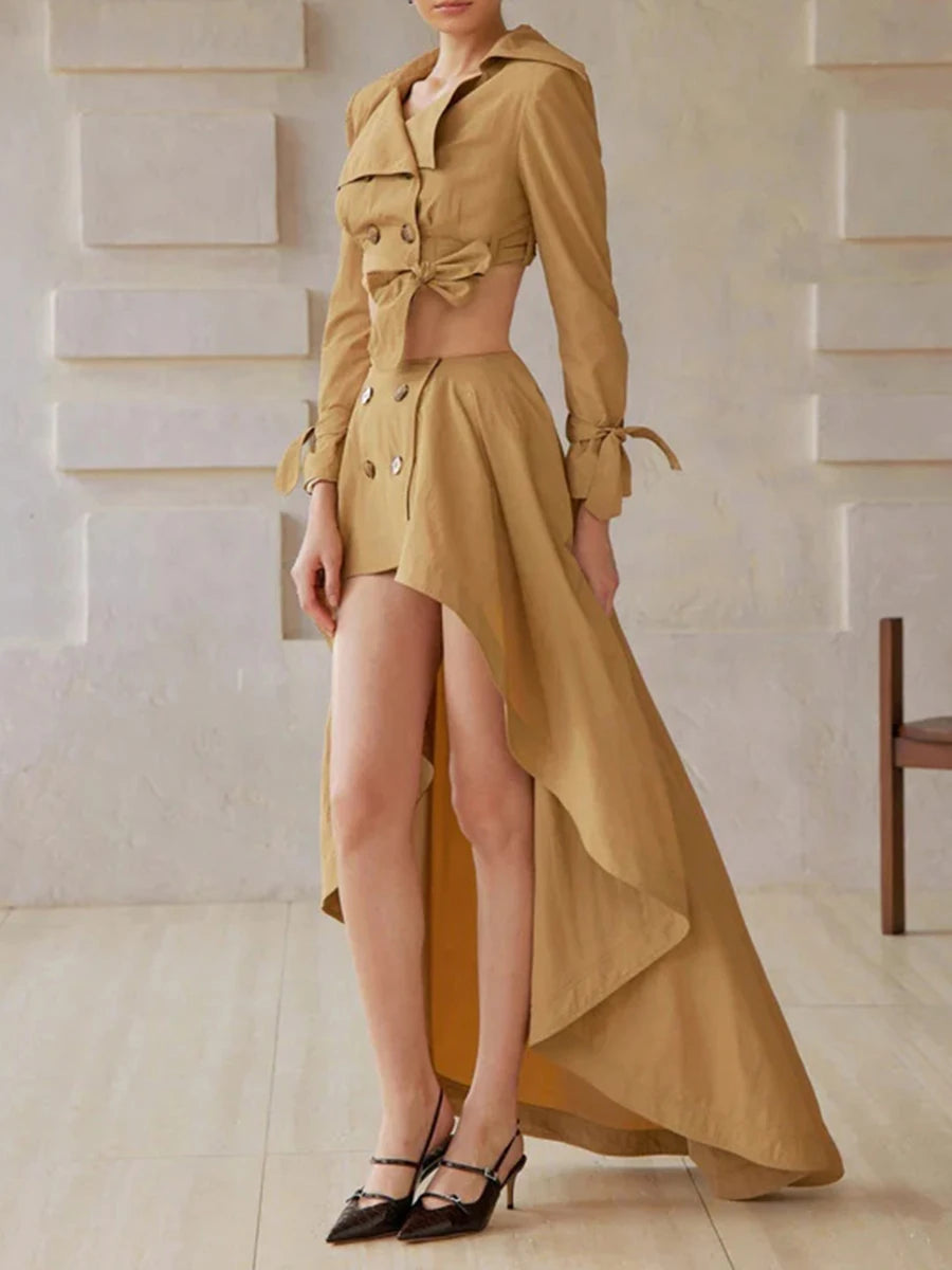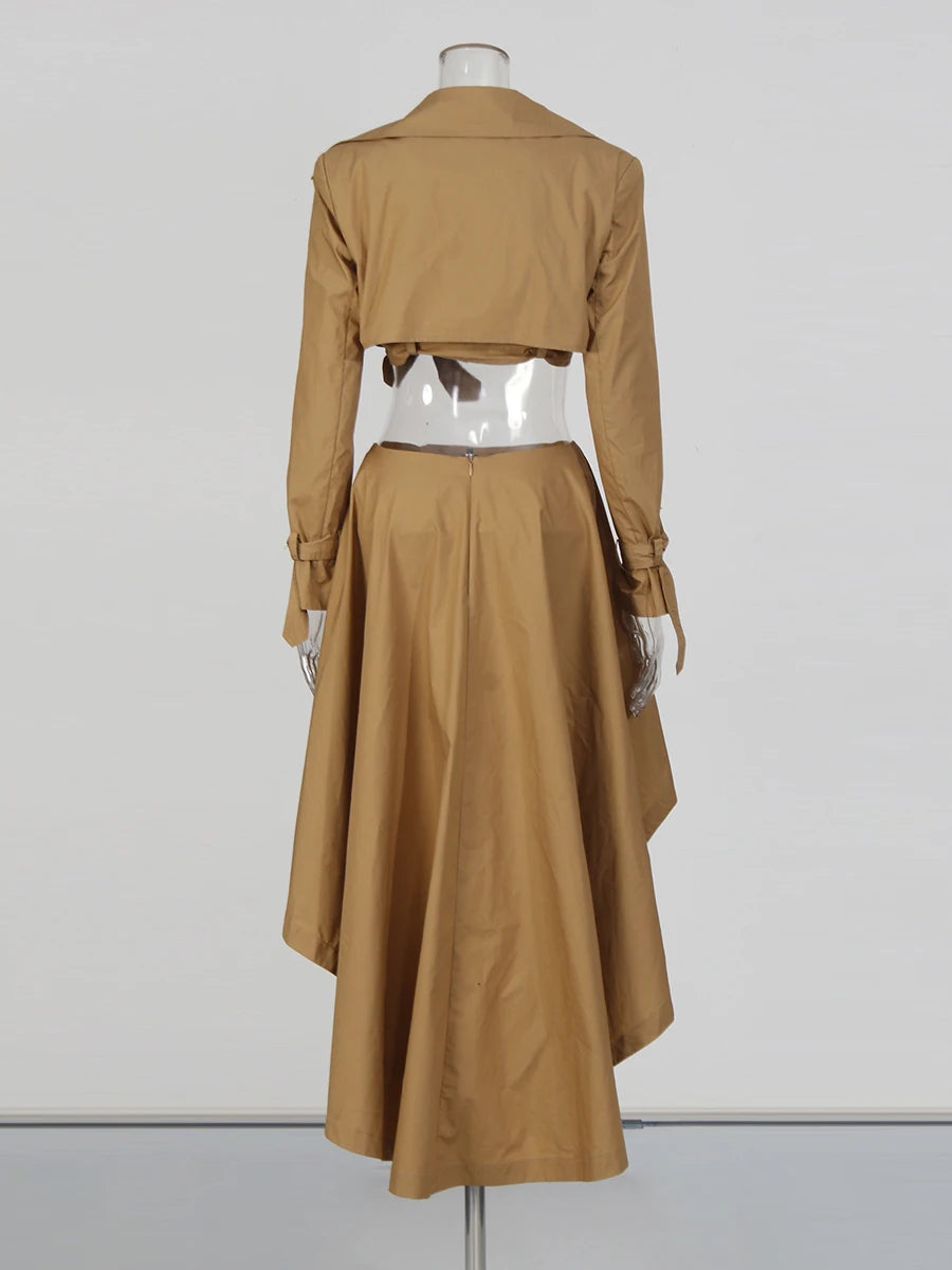 Trend4us Asymmetrical Cutout Trench Two-Piece Skirt Set