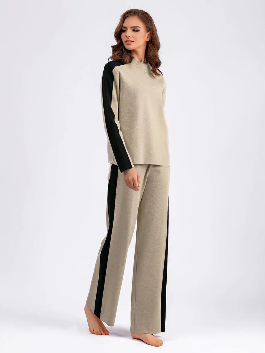 Elevate your loungewear with this chic contrast trim knit set featuring modern detailing.