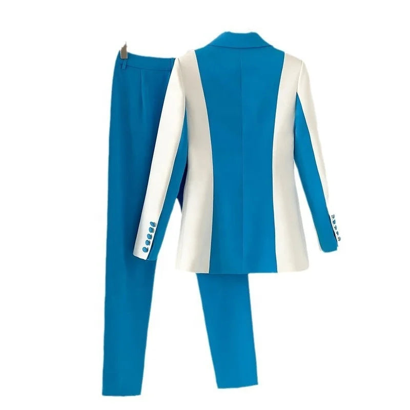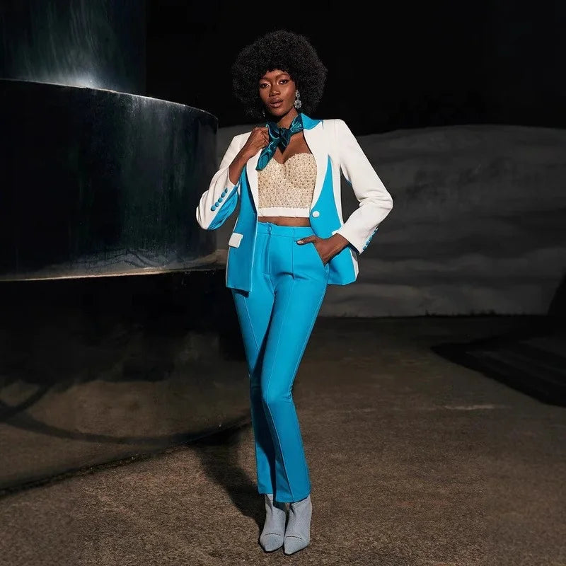 Trend4us Colorblock Tailored Blazer & Slim-Fit Pants Set