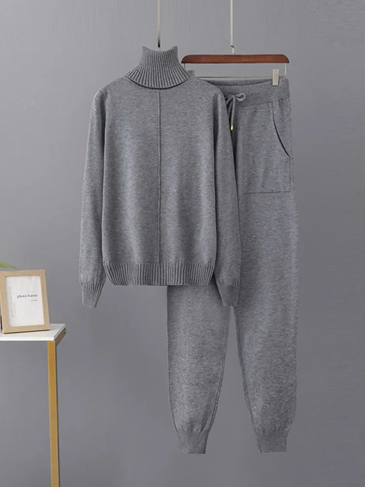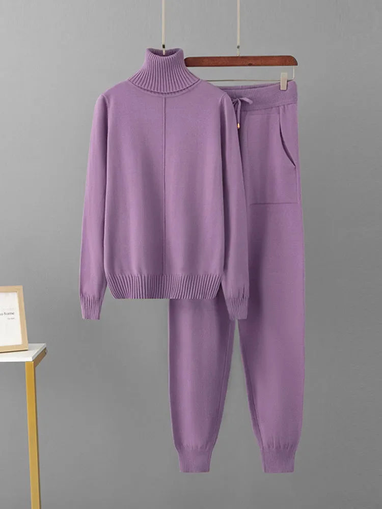 Trend4us Cozy Turtleneck Knit Sweater & Jogger Set