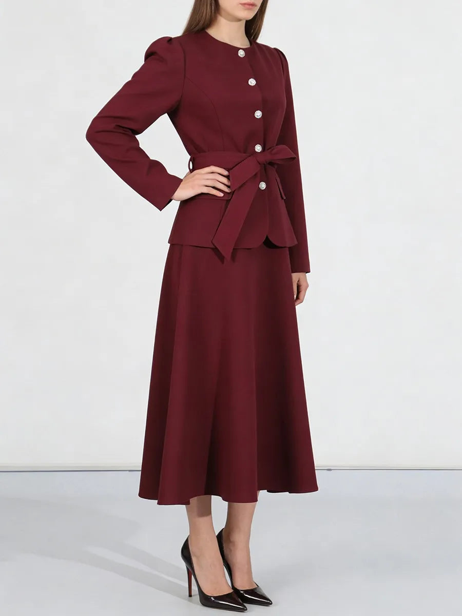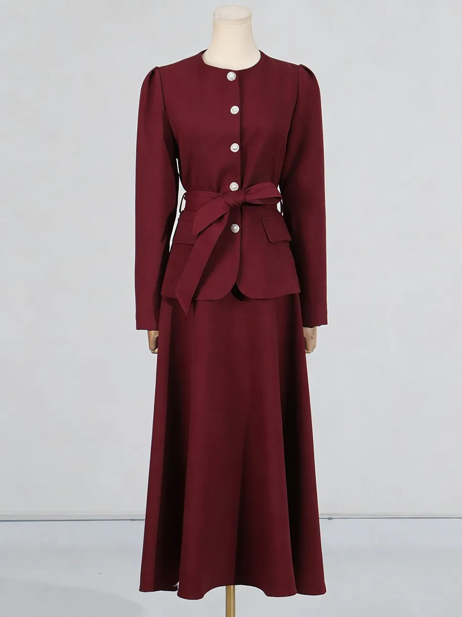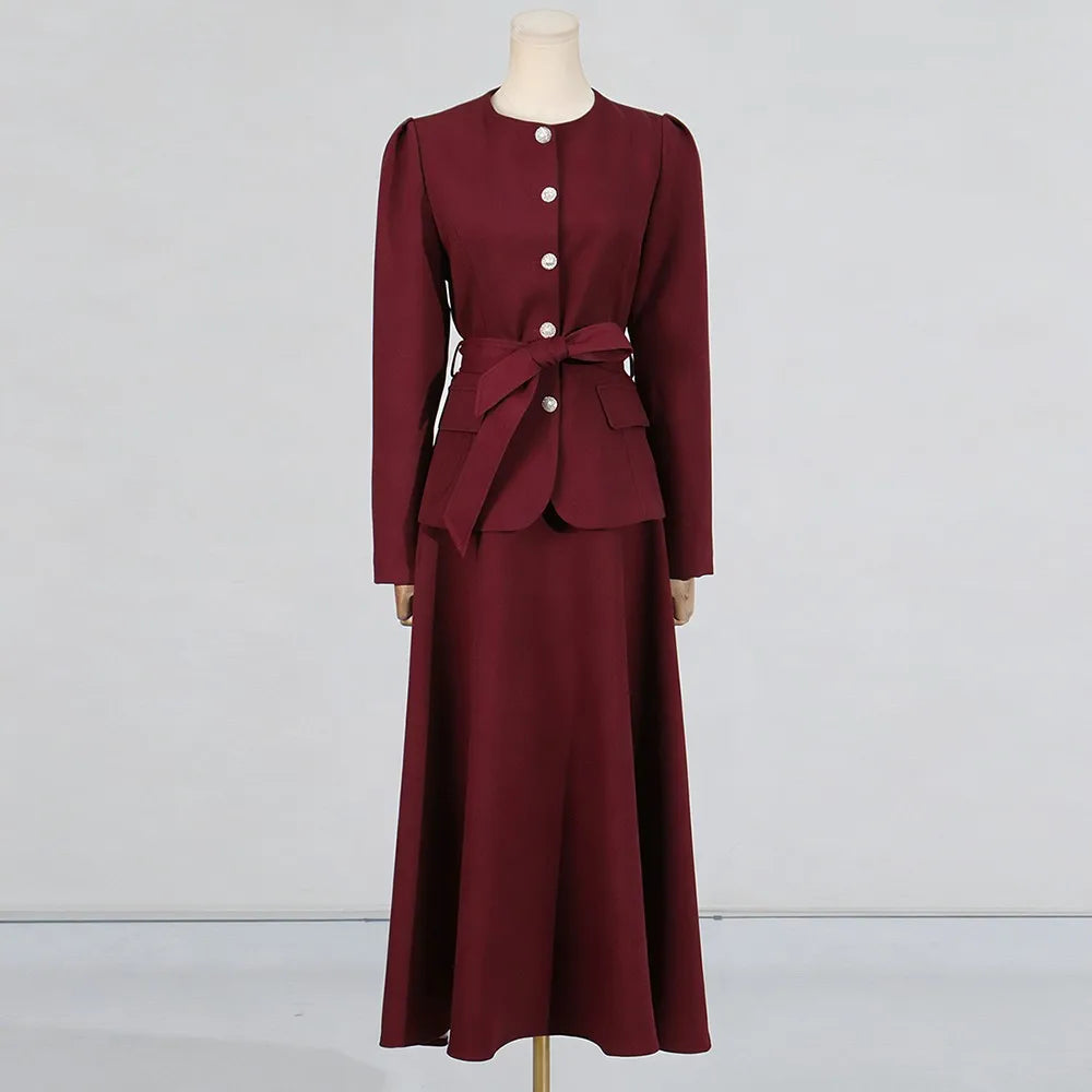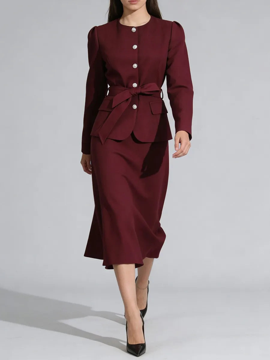 Perfect for professional settings, formal events, and power dressing. Wear the set together for maximum impact, or style each piece separately to maximize your wardrobe. Pair with pointed-toe heels and minimal jewelry for sophisticated elegance. The belted blazer creates a defined waistline while the midi skirt adds feminine polish.