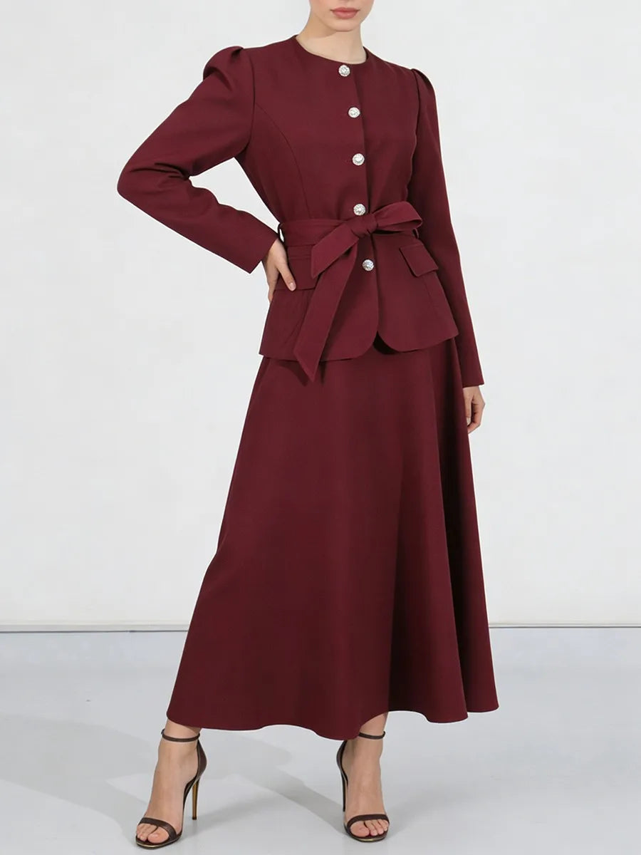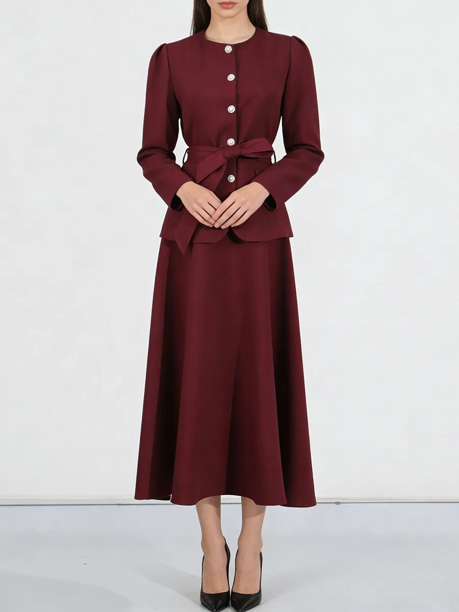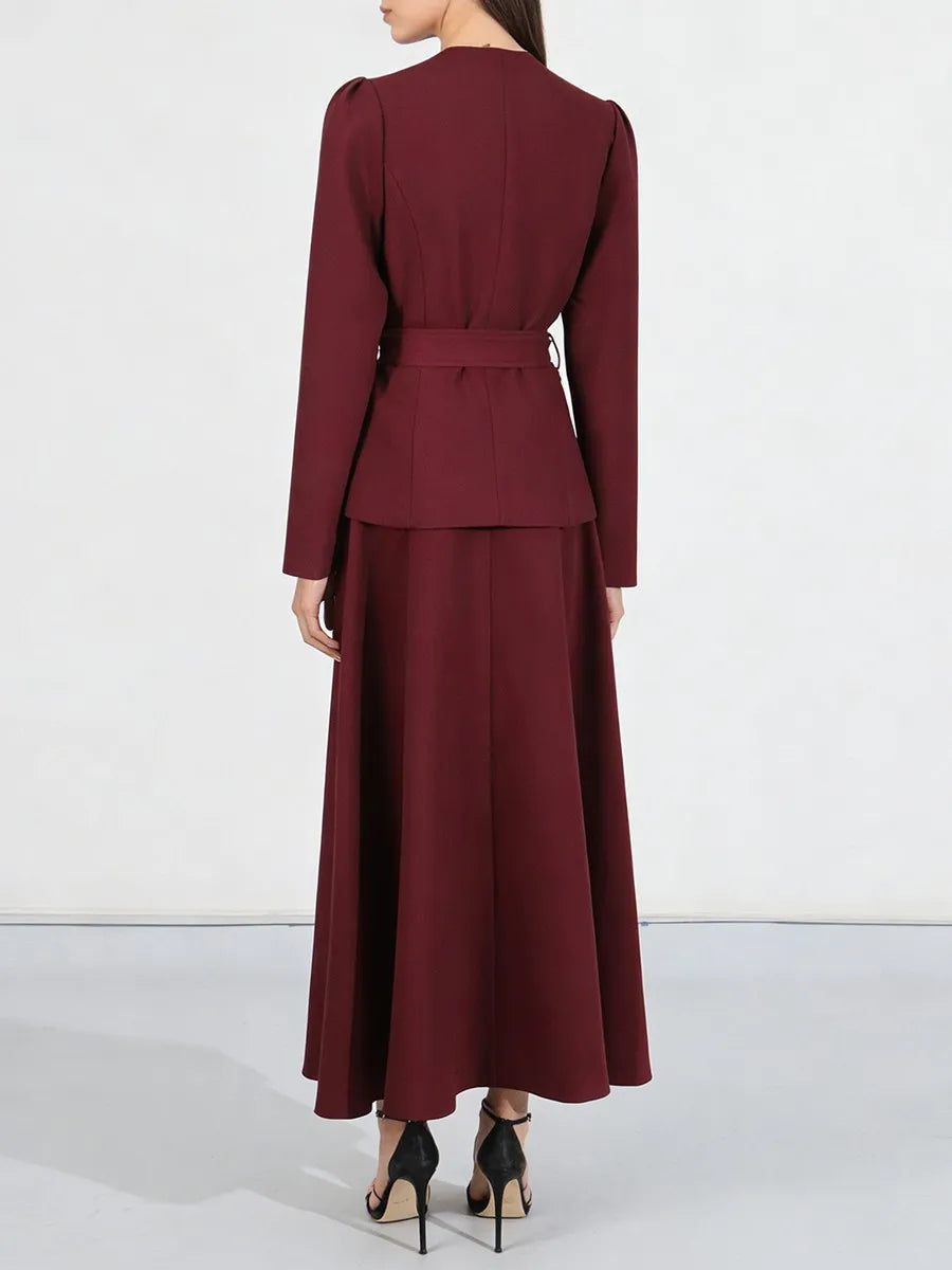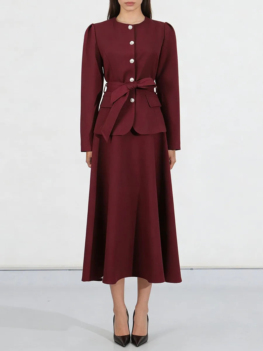 Perfect for professional settings, formal events, and power dressing. Wear the set together for maximum impact, or style each piece separately to maximize your wardrobe. Pair with pointed-toe heels and minimal jewelry for sophisticated elegance. The belted blazer creates a defined waistline while the midi skirt adds feminine polish.