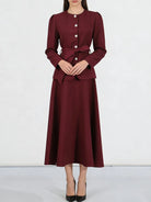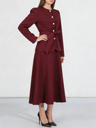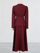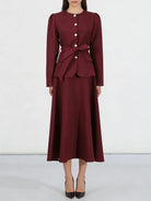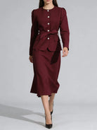 Trend4us Elegant Buttoned Belted Blazer & Midi Skirt Set