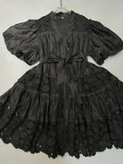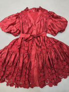 Delicate lace meets effortless femininity in the Trend4us Elegant Lace Puff Sleeve Tie-Waist Mini Dress. Designed with a soft V-neckline and airy puff sleeves, this mini dress features intricate lace paneling that adds depth and texture while maintaining a light, romantic feel. The adjustable self-tie waist cinches gently for a flattering silhouette, flowing into a softly flared skirt with scalloped lace detailing.