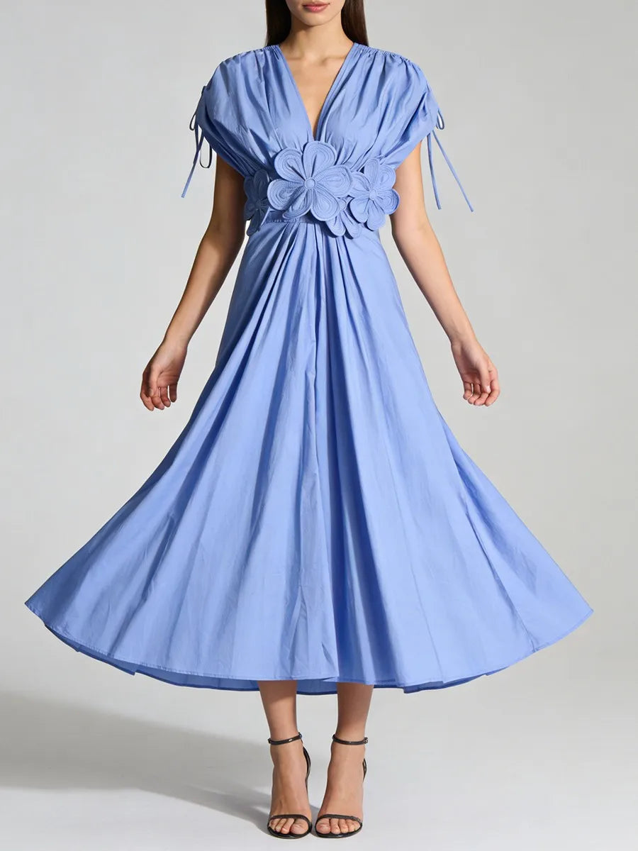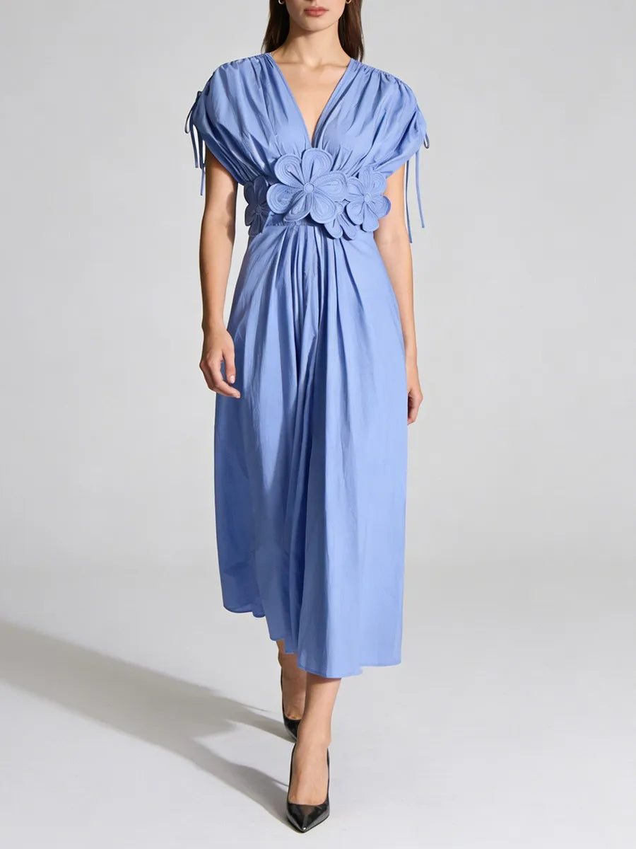 Trend4us Luxe 3D Floral Appliqué V-Neck Midi Dress