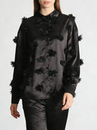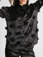 Perfect for elevating both casual and dressy looks. Pair with tailored trousers for sophisticated office style, or tuck into a midi skirt for evening elegance. The 3D floral details add romantic dimension, making this shirt ideal for date nights, special occasions, or any time you want to feel luxurious.