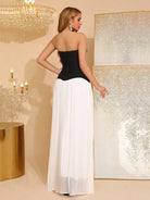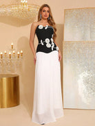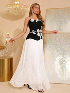Trend4us Luxe 3D Floral Strapless Pleated Chiffon Maxi Dress