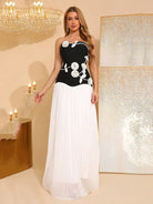 Float into any occasion with this breathtaking 3D floral strapless pleated chiffon maxi dress. This romantic piece combines delicate 3D floral embellishments with flowing pleated chiffon and an elegant fit-and-flare silhouette, creating a dreamy, feminine look for the modern woman.