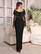 Trend4us Luxe Beaded Sheer Cape Mesh Sleeve Maxi Dress