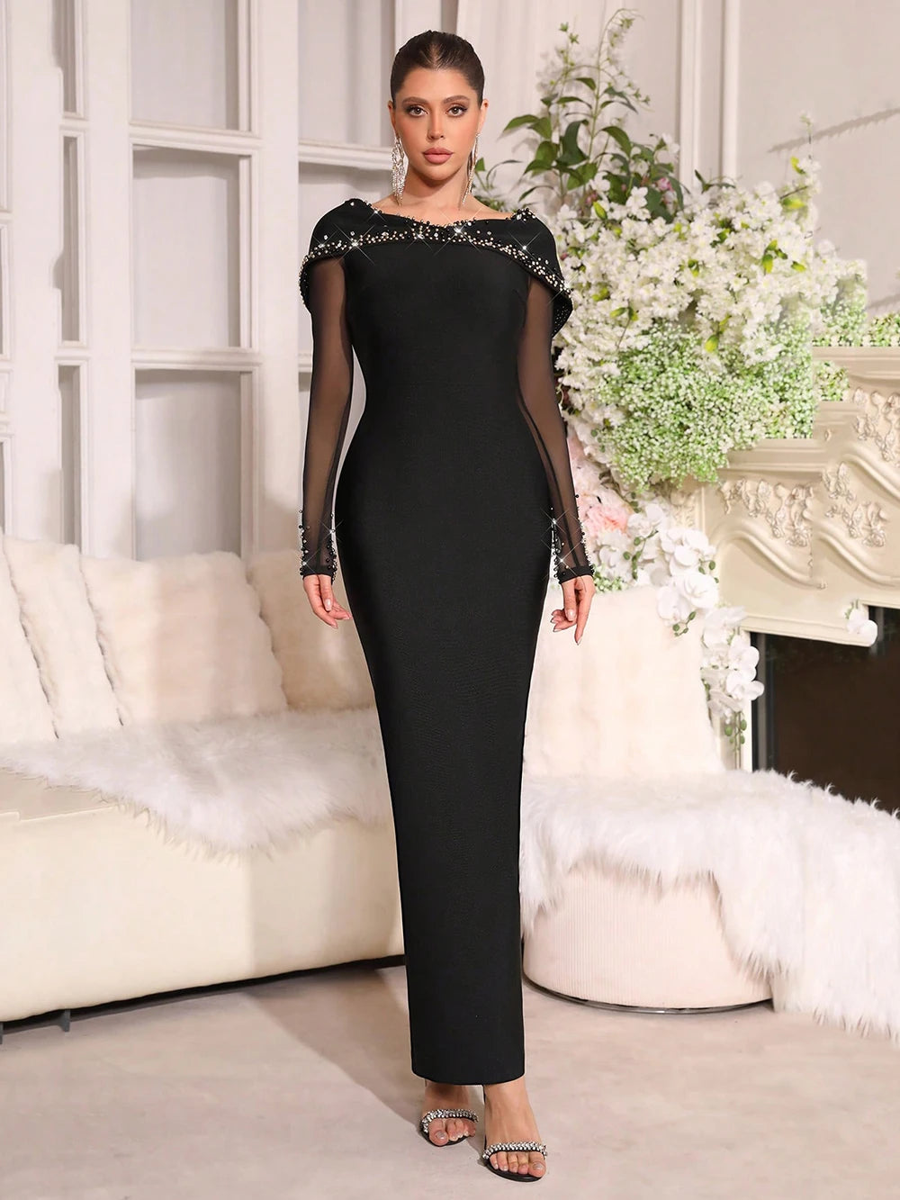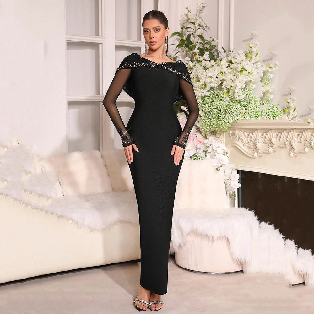 Command every room with this breathtaking beaded sheer cape mesh sleeve maxi dress. This show-stopping piece combines ethereal sheer cape detailing with elegant mesh sleeves and exquisite beaded embellishments, creating a dramatic, red-carpet-worthy look for the woman who isn't afraid to shine.