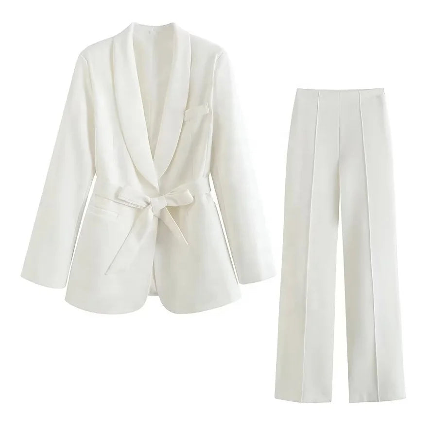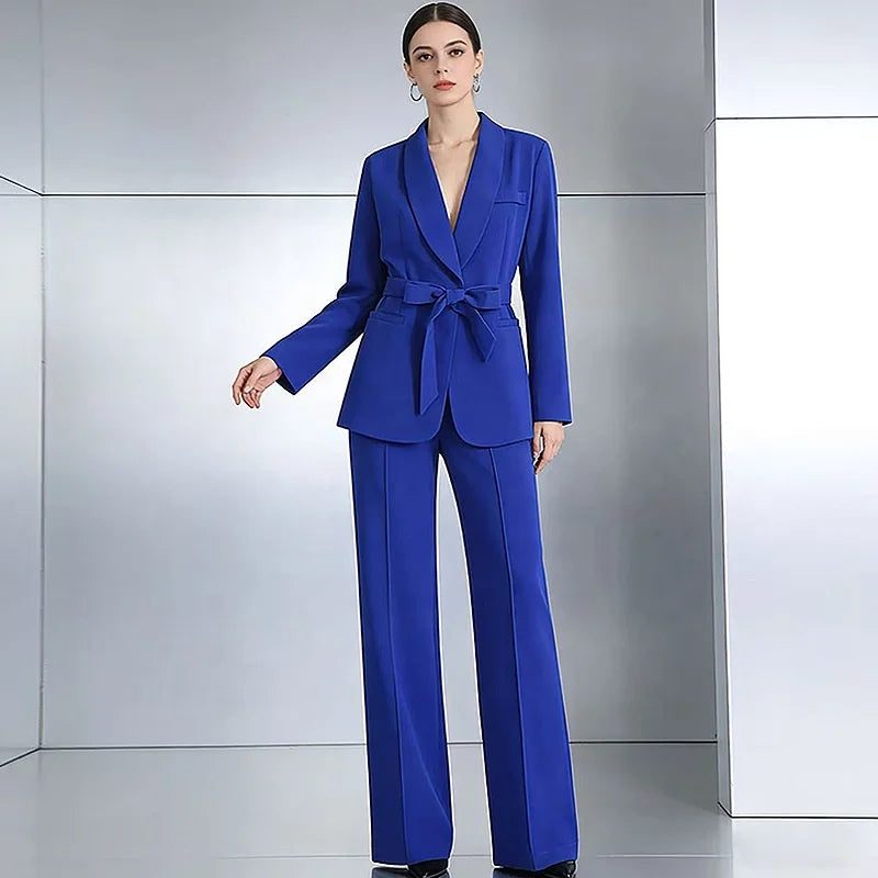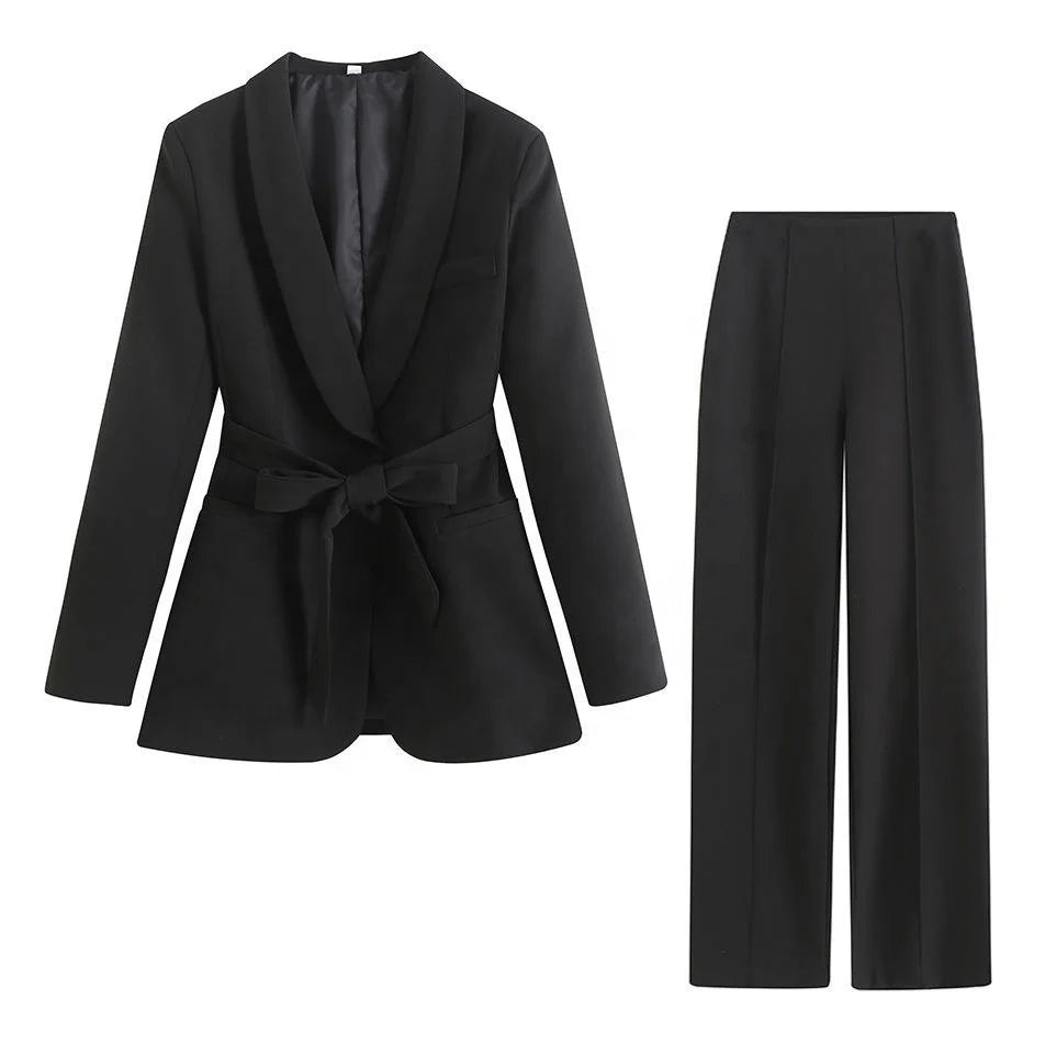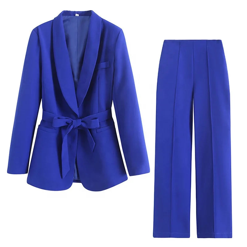 Wear the complete set for a powerful boardroom presence or special events. The belted blazer pairs beautifully with tailored trousers or a pencil skirt, while the wide-leg pants look stunning with a fitted blouse or sleek bodysuit. Add heels to elongate your frame or style with loafers for modern sophistication.