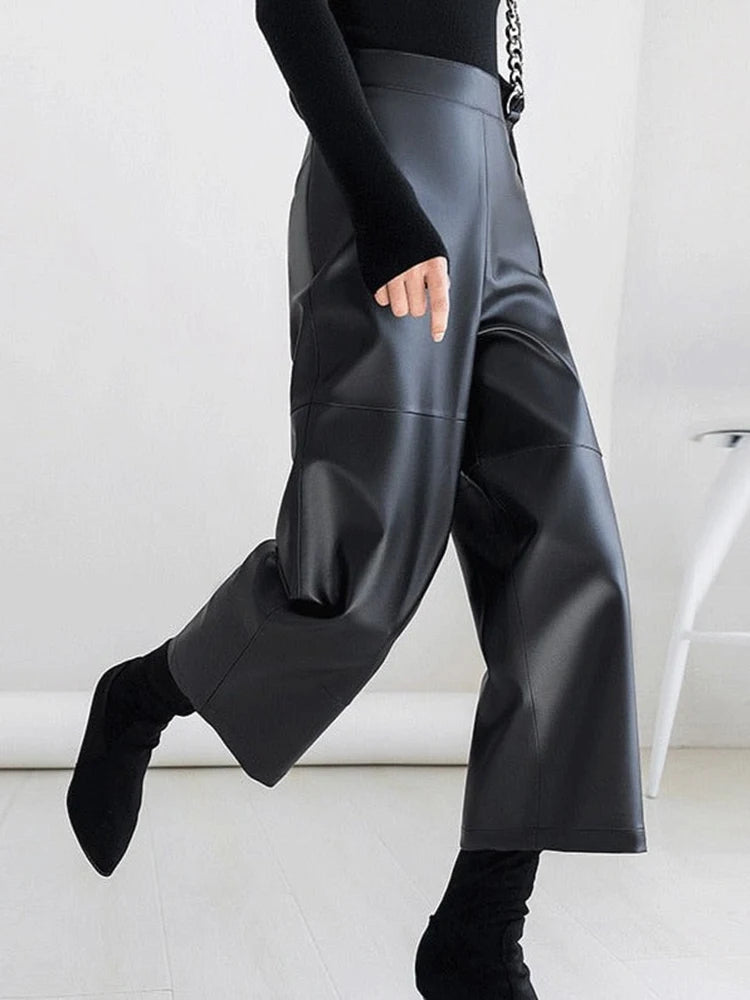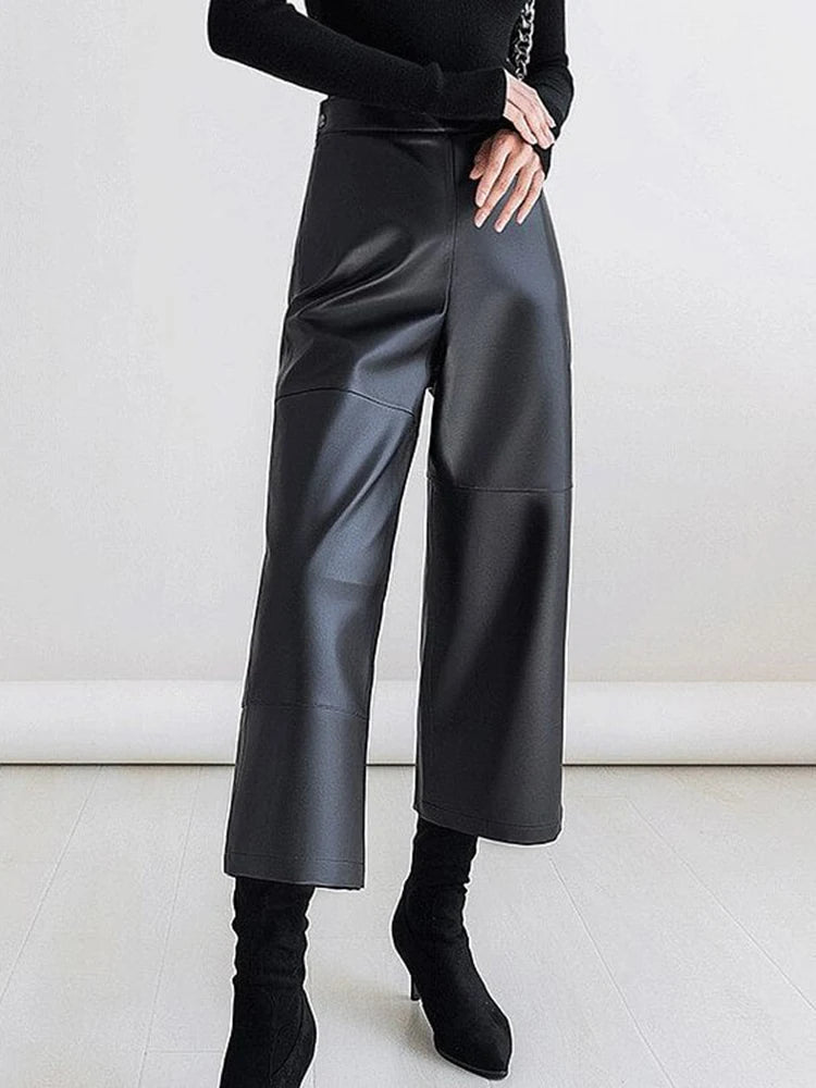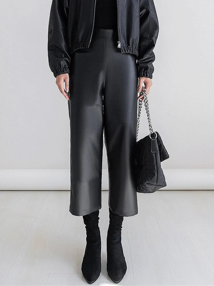 Elevate your style with the Trend4us Luxe Cropped Wide-Leg Faux Leather Pants, a modern essential that blends vintage-inspired tailoring with contemporary edge. Crafted from premium faux leather (PU) with a smooth, structured finish, these pants feature a flattering high-waisted fit and a relaxed wide-leg silhouette that creates effortless movement and elongates the legs.